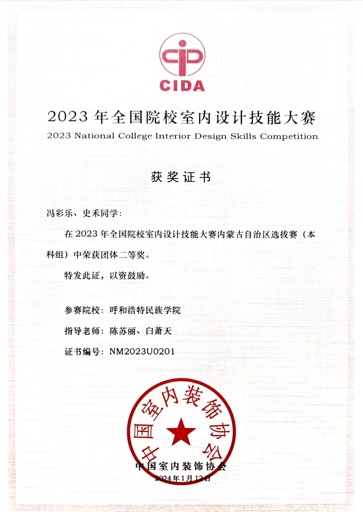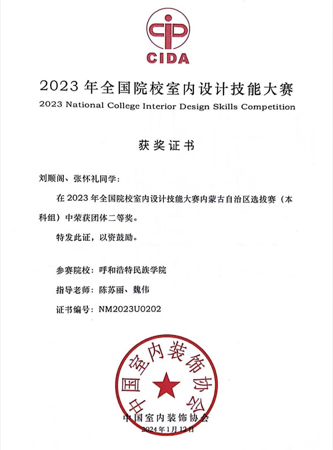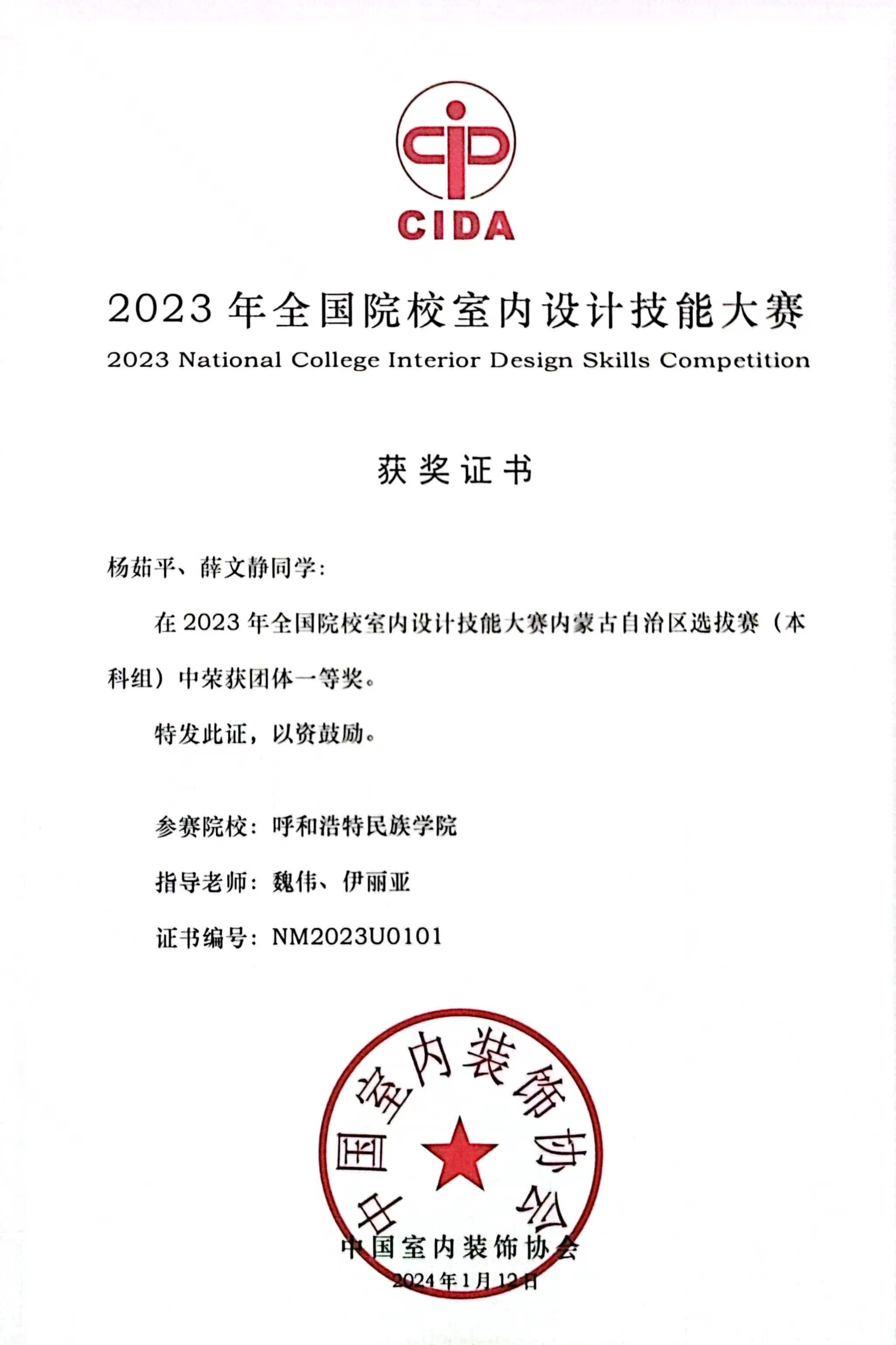 由中国室内装饰协会、教育部职业院校艺术设计类专业教学指导委员会、环境艺术设计类专业委员会组织的2023年全国院校室内设计技能大赛内蒙古自治区选拔赛结果揭晓。我院师生作品获得佳绩:魏伟、伊丽亚老师指导的《守护星辰--社区亲子活动中心》(学生:杨茹平、薛文静)荣获本科组团体一等奖;陈苏丽、魏伟老师指导的《悠宝亲子活动中心》(学生:刘顺阁、张怀礼)和陈苏丽、白萧天老师指导的《星际宇宙》(学生:冯彩乐、史禾)均荣获本科组团体二等奖。其中《守护星辰--社区亲子活动中心》与《星际宇宙》入围全国总决赛,总决赛将于2024年4月8日-4月11日在哈尔滨职业技术学院举办,期待各位在总决赛中再创佳绩!