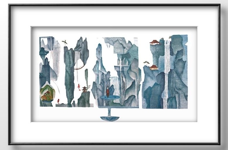 1/10水印木刻版画《山水之序·游刃有鱼》63x120cm赵敏2025年5月