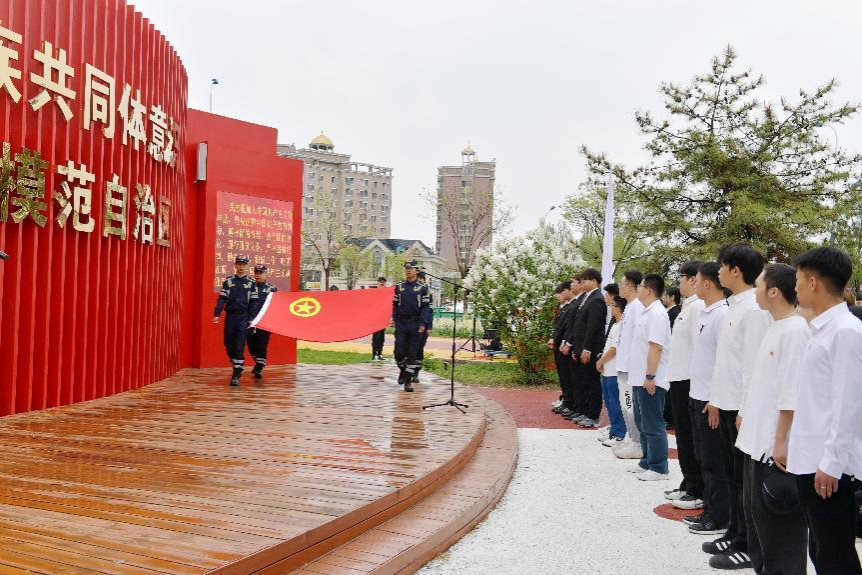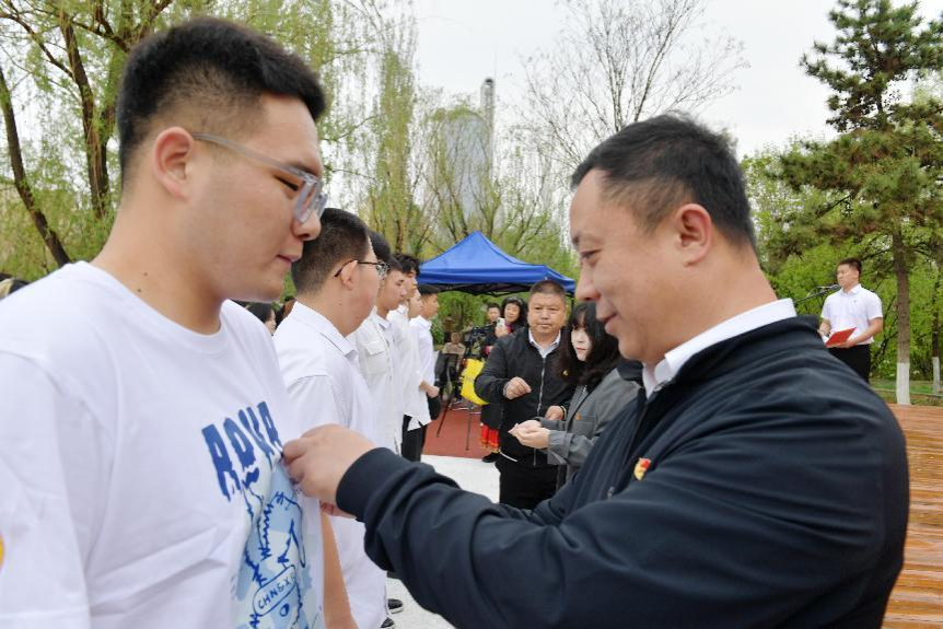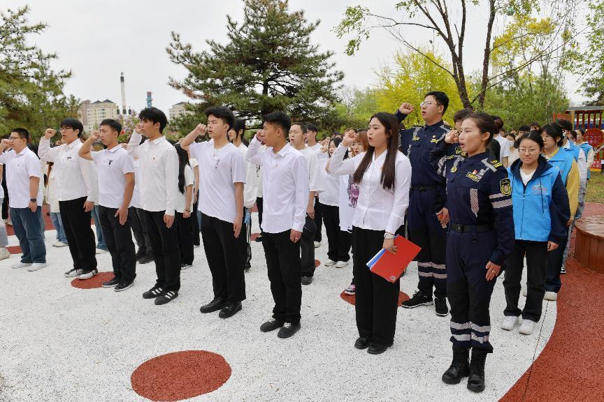 为深入学习贯彻习近平新时代中国特色社会主义思想,贯彻落实习近平总书记关于青年工作的重要论述,激发广大团员和青年纪念和传承五四精神,勇担青春使命、争做时代新人,4月28日上午,beat365英国官方网站美术学院团总支与回民区团委、内蒙古北疆志愿服务联合会、内蒙古师范大学青年政治学院、内蒙古建筑职业学院等四家单位在回民区“红石榴”志愿服务主题公园联合举办了“青春奋进新时代  挺膺担当向未来”2024年集中规范性入团仪式。我院团总支书记魏伟、辅导员吴丰林带领2024年新入团团员和“红石榴”志愿服务队成员参加活动。