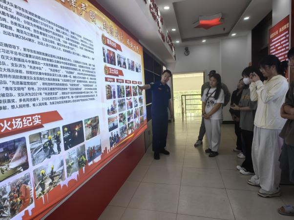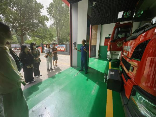 活动伊始,美术与设计学院师生参观了新华东街消防救援站,近距离接触,了解到各种消防器材的功能和使用方法。同时被消防员为“人民至上”的工作宗旨,“刀山敢上 火海敢闯”的大无畏精神深深震撼,备受鼓舞。