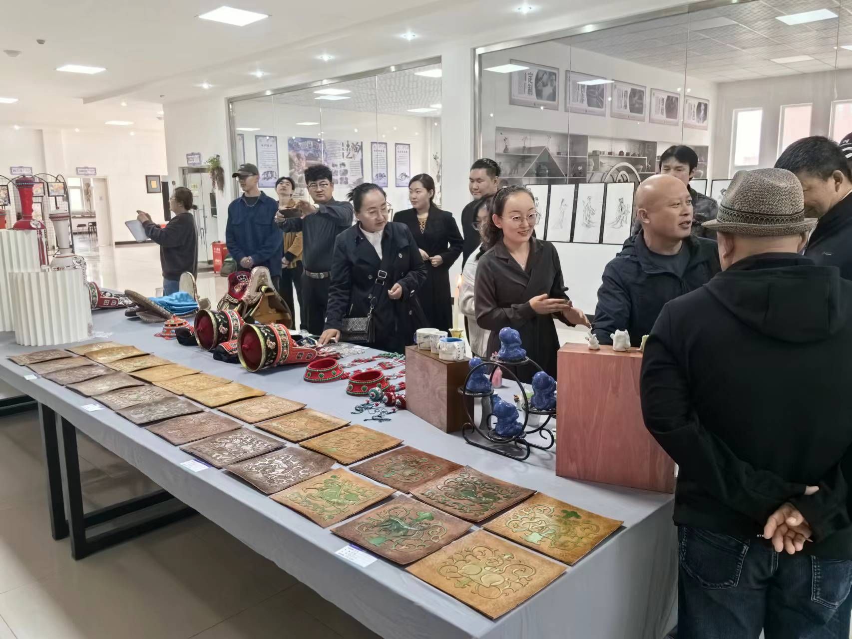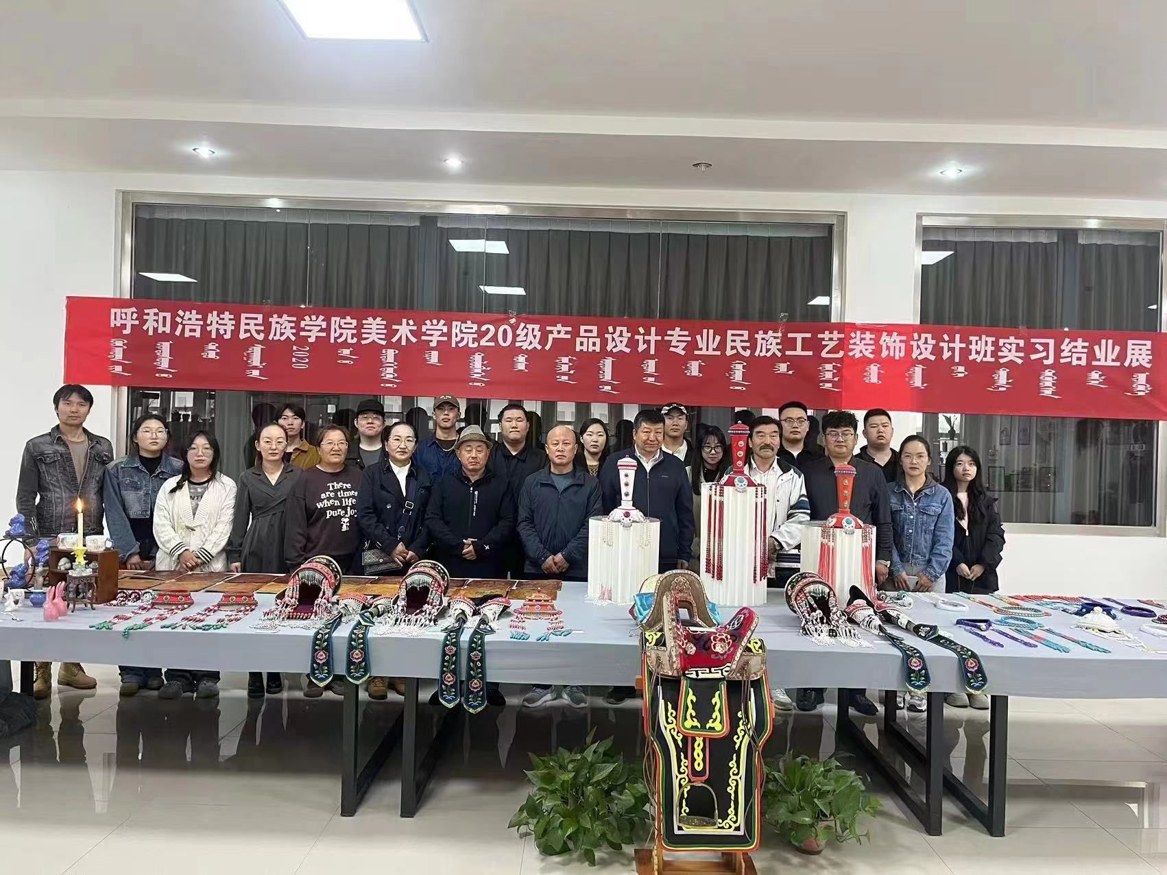 在实习期间,鄂托克前旗职业高中给与我院大力支持,特邀其聘请的非遗传承人为我们学生专门讲授了马鞍制作、鄂尔多斯头饰制作及皮雕、毡艺、金属工艺等课程。我院学生在原有的专业功底上,全身心地投入学习创作,汲取精髓,结合传统与现代审美,在短短的一个月之内制作各类工艺美术作品300余件,并由校方为我院学生举办专场展览,给予我院学生对专业的热爱、学习态度和专业水平给与了高度评价。同时,我院学生以助教的身份全程参与学校的课堂管理、教学服务工作,得到了其师生的一致认可,为进一步有效推动两校之间的深度合作切实起到了良好作用。