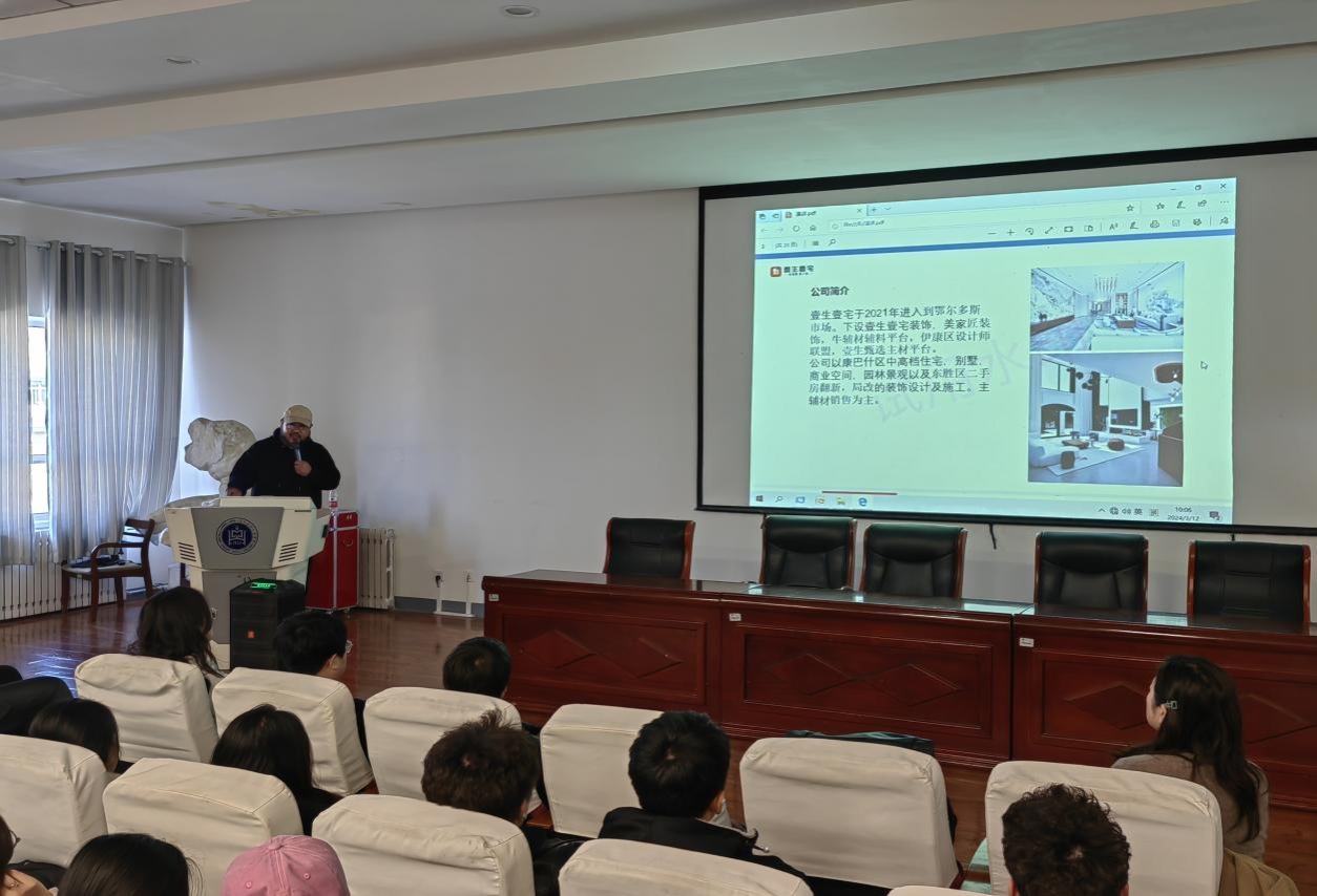 为进一步精准、有效地推动2024届毕业生去向落实工作,3月12日,美术学院邀请鄂尔多斯壹生壹宅装修有限公司创始人、首席设计师车魏为我院环境艺术设计专业毕业生进行了专场招聘宣讲。