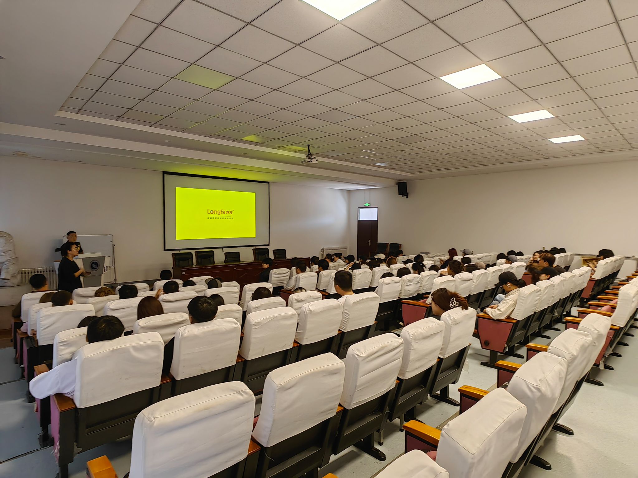 5 月 14 日,美术与设计学院举办“2025 届毕业生专场招聘宣讲会暨职业生涯规划指导专题讲座”。美术与设计学院党总支书记吴利春、美术与设计学院副院长芬笋得日、团总支书记魏伟、环境设计专业教研室主任伊丽亚以及环境设计专业、视觉传达设计专业、美术学专业大二至大四 120 名学生到场参与。活动邀请龙发装饰呼和浩特公司人力资源经理刘青松为主讲人。
