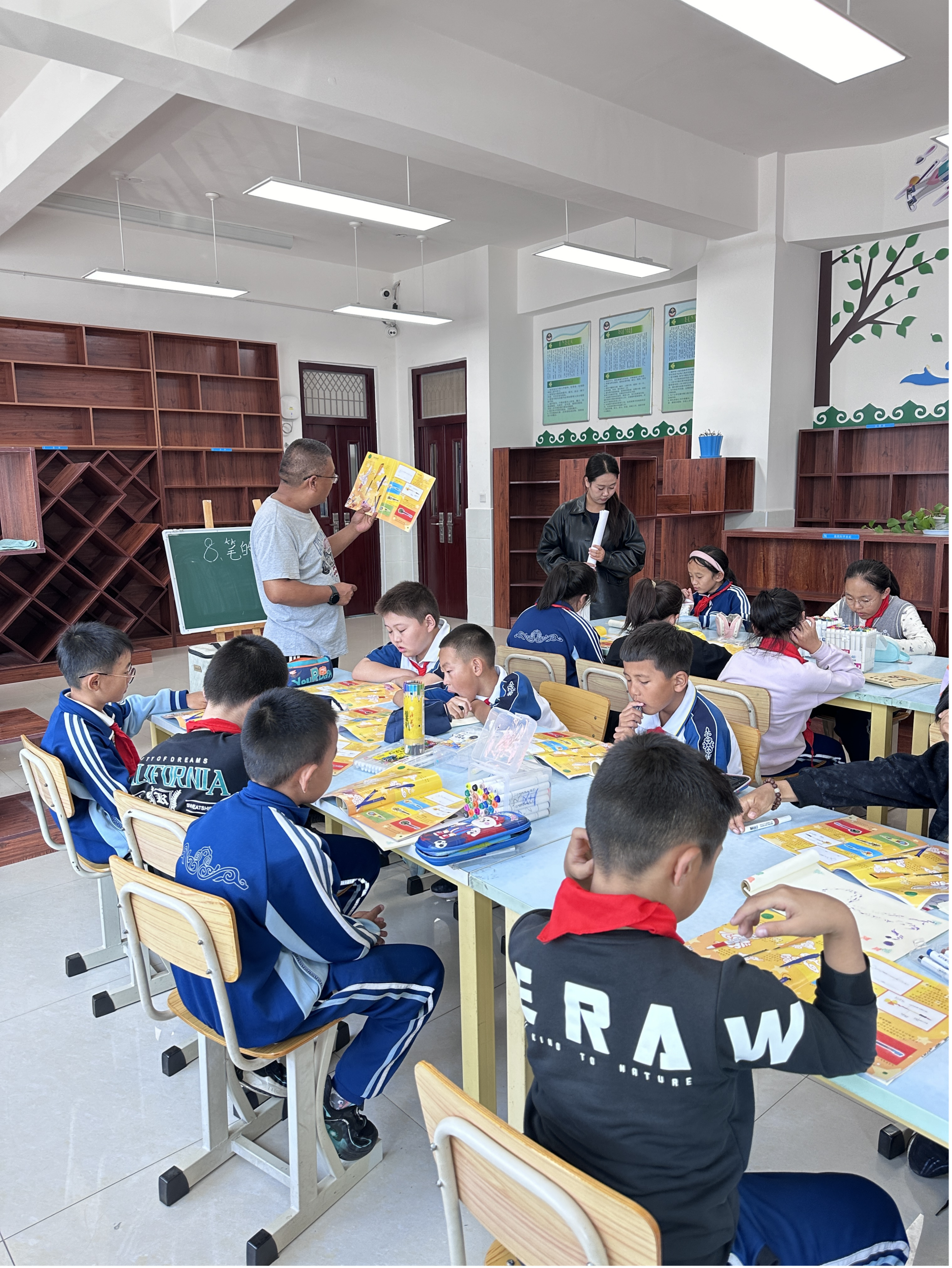 在实习过程中,同学们积极投入参与了各学校备课、课堂教学、教学反思及课后辅导等各项工作。在指导教师的全程指导下,从教学设计、教案编写到课堂授课,精心准备,努力探索适合中小学学生的教学方法,并运用多样化的教学手段,如多媒体展示、互动式教学、现场示范等方式,生动有趣地教授美术知识,深受实习学校师生的喜爱与好评。通过与实习学校美术教师的沟通交流,同学们也学到了宝贵的教学方法,积累经验,为不断改进和提升自己的教学水平起到了积极作用。
