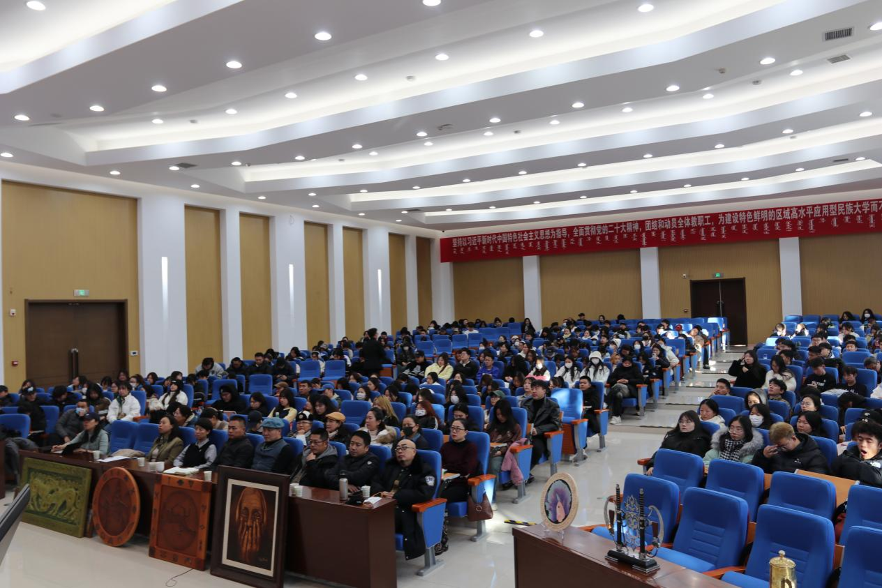 为持续推进我院“美育大讲堂",深入开展美育教学,11月30日下午,美术学院邀请内蒙古师范大学李崇辉教授在学校学术报告厅举办了专题讲座。讲座由美术学院副院长塔娜主持,美术学院300多名师生聆听了讲座。