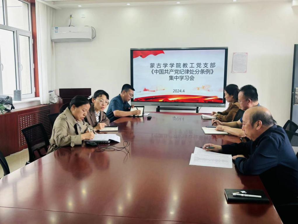 随后,党总支书记阿古达木传达学习中共中央办公厅《关于在全党开展党纪学习教育的通知》精神以及中央、自治区党委和学校党委关于研究部署党纪学习教育工作的会议精神。