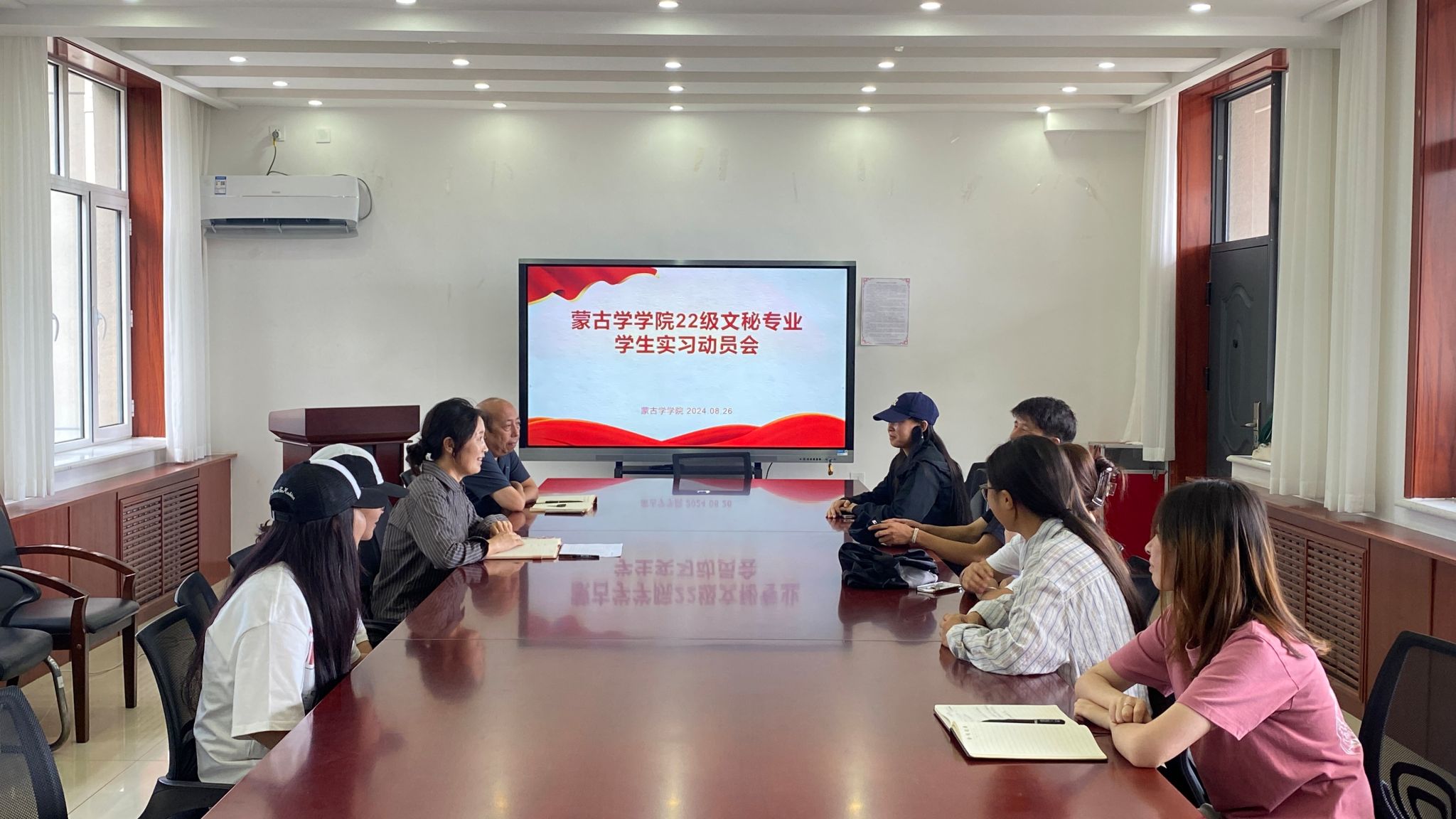 2024 年 8 月 26 日 12:30,崇正楼 316 教室召开了新城局教育局实习生动员会。蒙古学学院学院阿力坦斯那嘎老师、和平老师和阿古老师出席了本次会议。