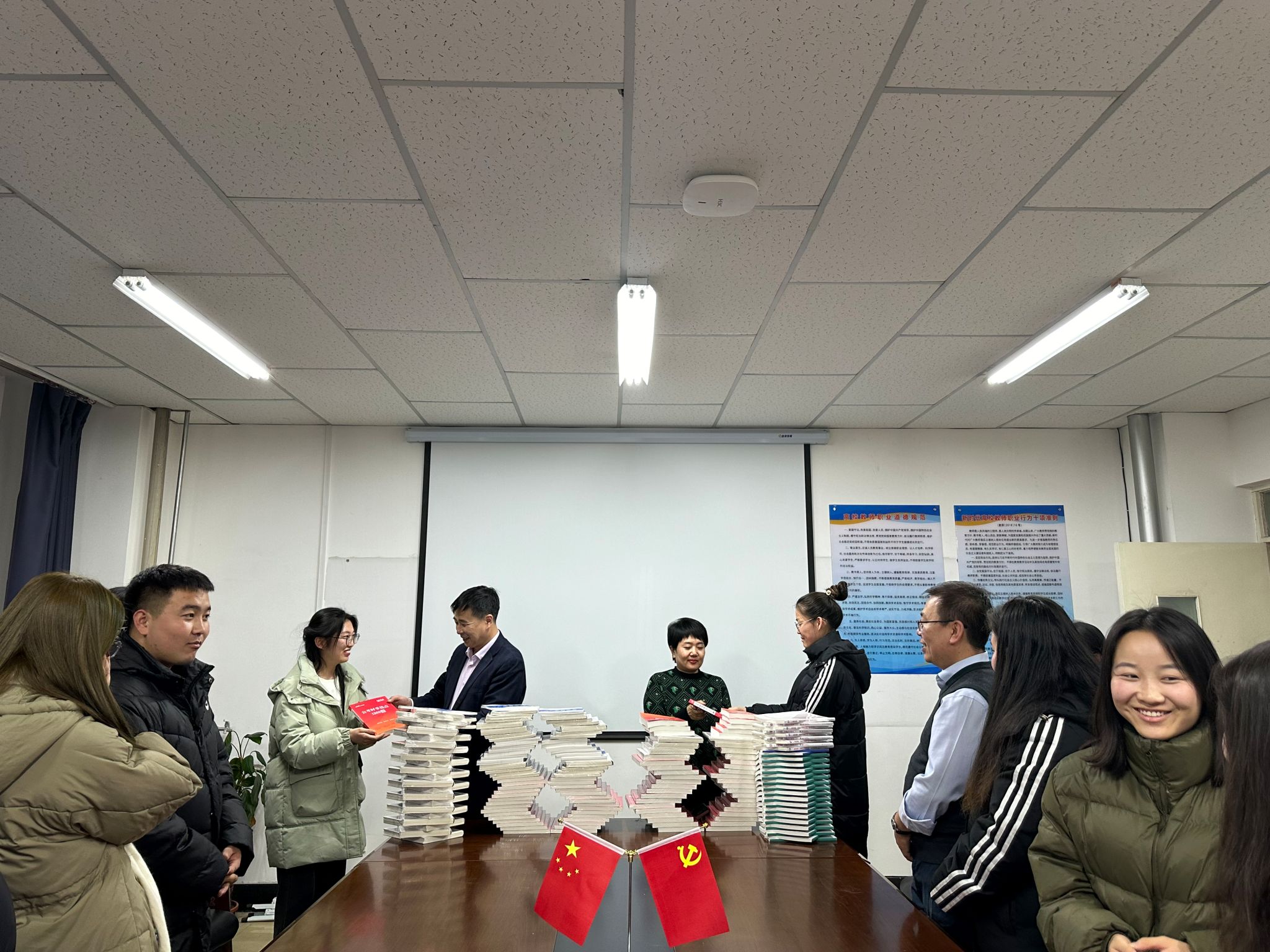 此次活动不仅为同学们带来了寒冬里的一丝温暖,赠送的书籍种类也很多,包括公考历年真题解析、公考教材、公考时政热点1200题、时政理论、选调生考试用书、三支一扶备考材料等400余本。同学们纷纷表示,他们也会继续努力,不辜负学院的殷切期望。