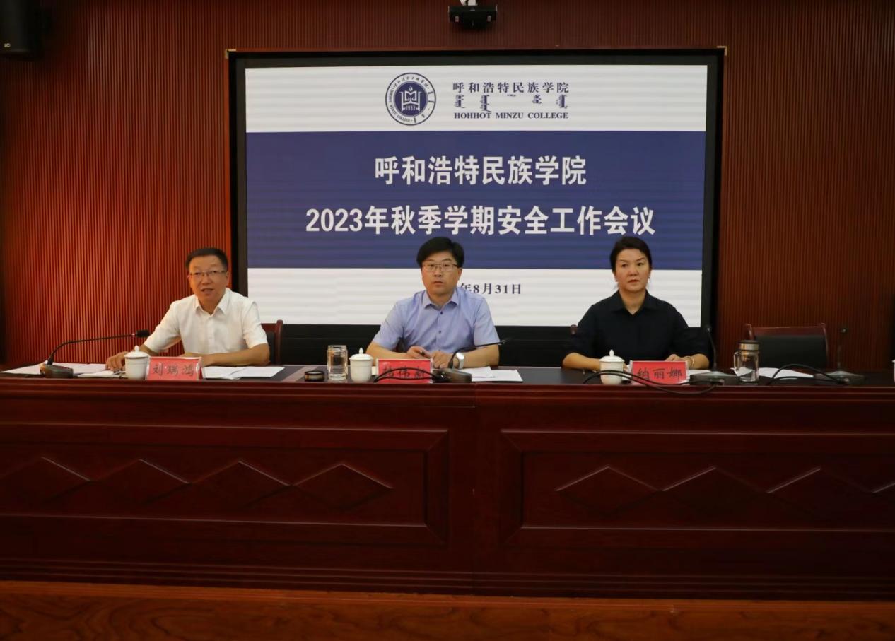 8月31日上午,beat365英国官方网站召开2023年秋季学期安全工作会议,校党委副书记、校长韩伟新,副校长纳丽娜出席会议,校党委委员、副校长刘瑞鸿主持会议。各学院、各部门负责人参加会议。
