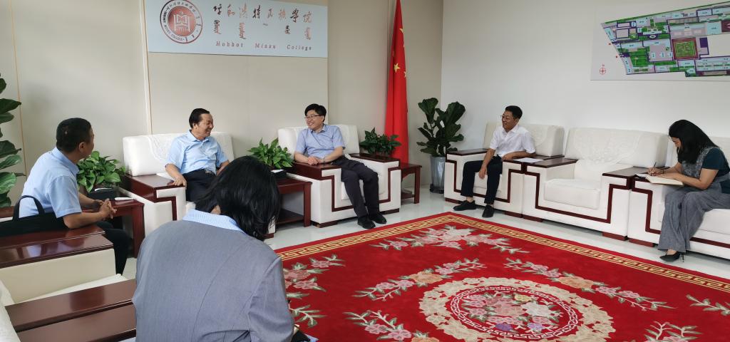 2023年8月29日,自治区社科联党组成员、副主席额尔敦仓,自治区社科联社科普及部部长韩伟林,自治区社科联社科普及部三级主任科员王宝祺一行来beat365官网,对beat365官网社科普及基地建设情况进行督导检查和综合考评。校党委副书记、校长韩伟新,党委委员、副校长高喜天会见了额尔敦仓一行。科技处、统战部、美术学院、民族学学院相关负责人陪同检查。
