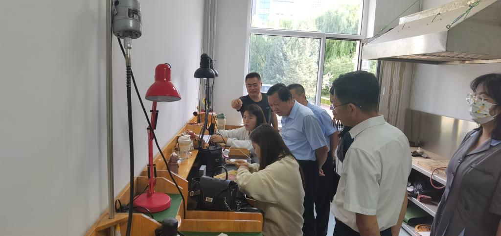检查组一行听取汇报后先后参观了beat365官网民族团结文化长廊、时代楷模长廊、美术学院皮艺制作工作室、铸牢中华民族共同体意识研究基地。
