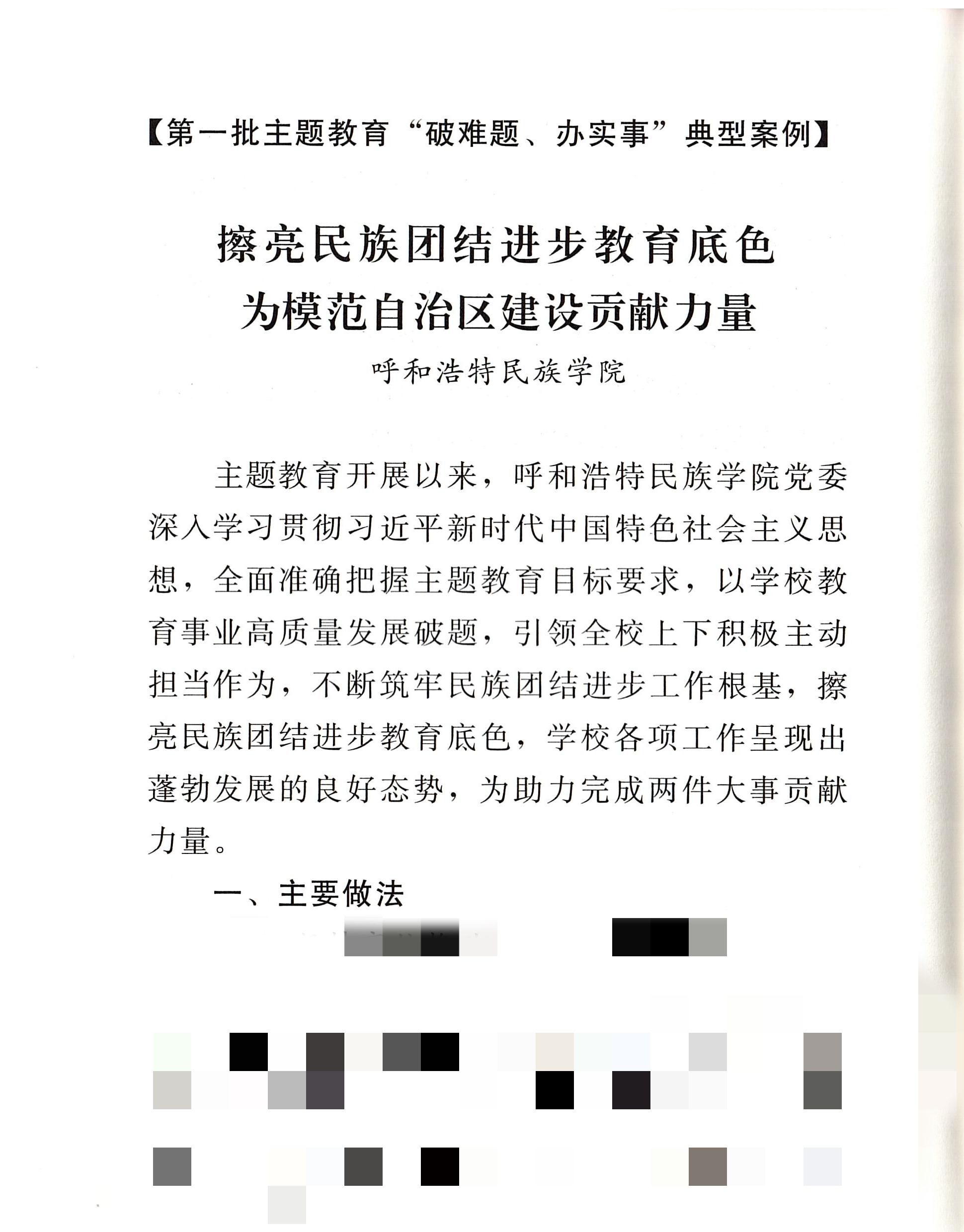 为深入总结第一批主题教育经验,引导全区各级党组织和广大党员干部大力弘扬蒙古马精神和“三北”精神,努力为办好“两件大事”,实现“闯新路、进中游”目标贡献智慧和力量,自治区党委主题教育领导小组办公室印发了《内蒙古自治区第一批学习贯彻习近平新时代中国特色社会主义思想主题教育“破难题、办实事”典型案例汇编》。beat365官网以“擦亮民族团结进步教育底色 为模范自治区建设贡献力量”为题的经验做法被收录。全区共有8家单位入选,其中beat365官网榜上有名。