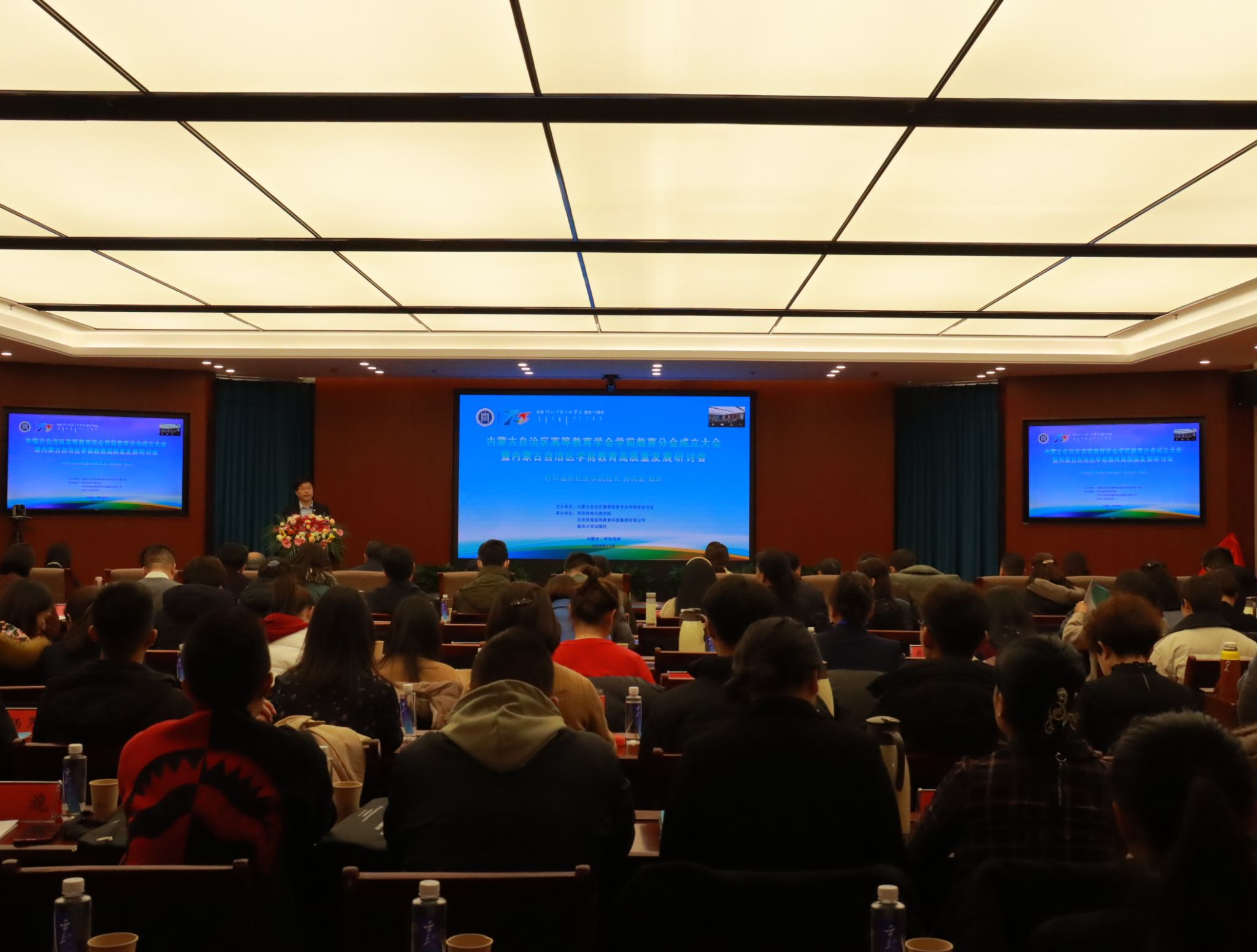 胡春梅主持开幕式时对内蒙古高等教育学会学前教育分会的成立表示热烈的祝贺,向各位专家学者的莅临表示热烈的欢迎,向自治区教育厅、自治区高等教育学会、内蒙古师范大学等兄弟院校、校企合作方的支持与帮助表示衷心的感谢。