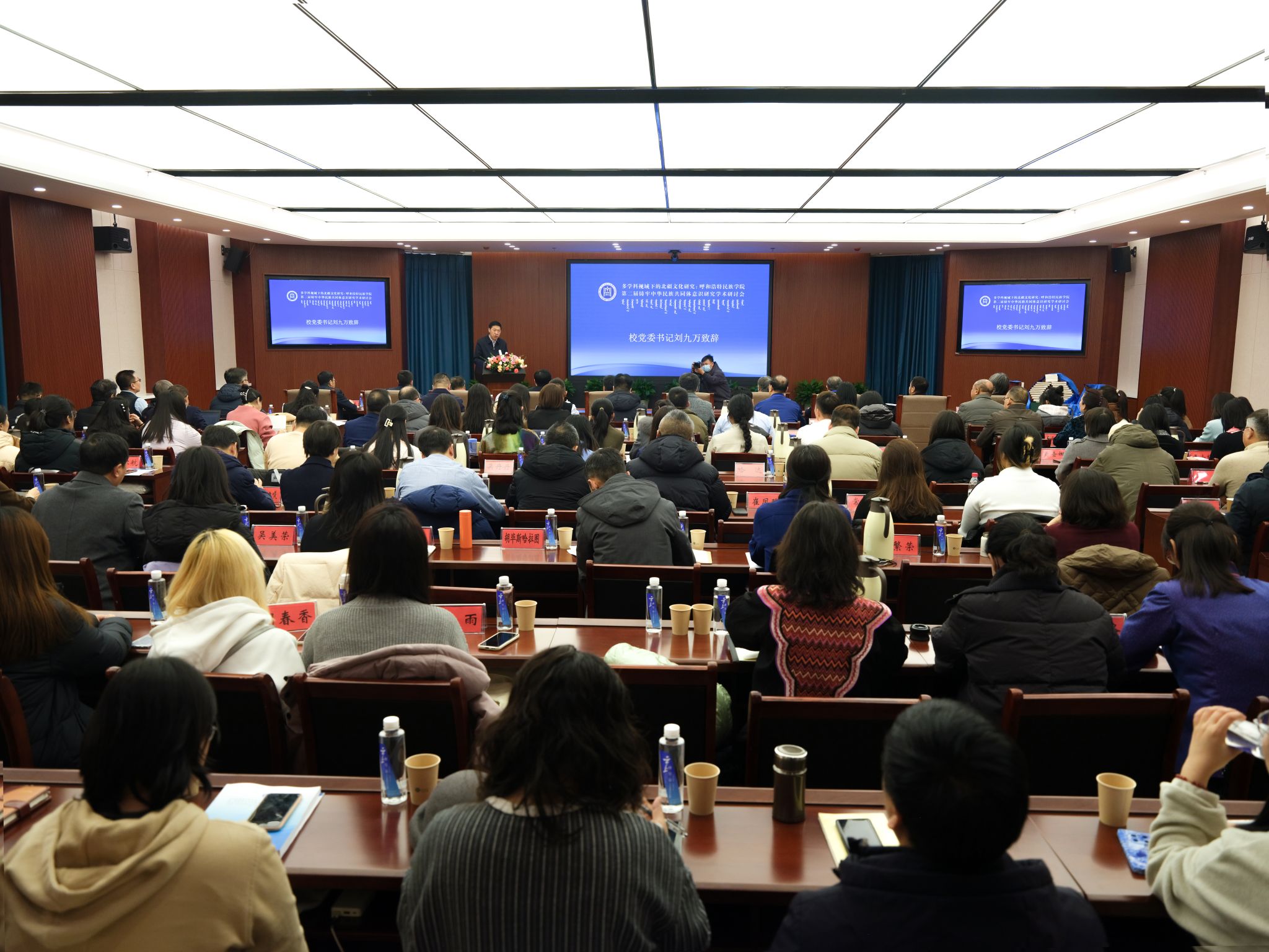 11月24至26日,学校铸牢中华民族共同体意识研究基地举办了校庆70周年系列活动之“多学科视域下的北疆文化研究:第二届铸牢中华民族共同体意识研究学术研讨会"。来自清华大学、中国人民大学、中央民族大学、兰州大学、西北民族大学、新疆师范大学以及区内各高校、科研机构的80余名专家学者出席本次学术研讨会。校党委书记、研究基地主任刘九万出席会议并致开幕辞,校党委副书记、校长韩伟新主持开幕式。校党委委员、副校长高喜天主持主旨报告。
