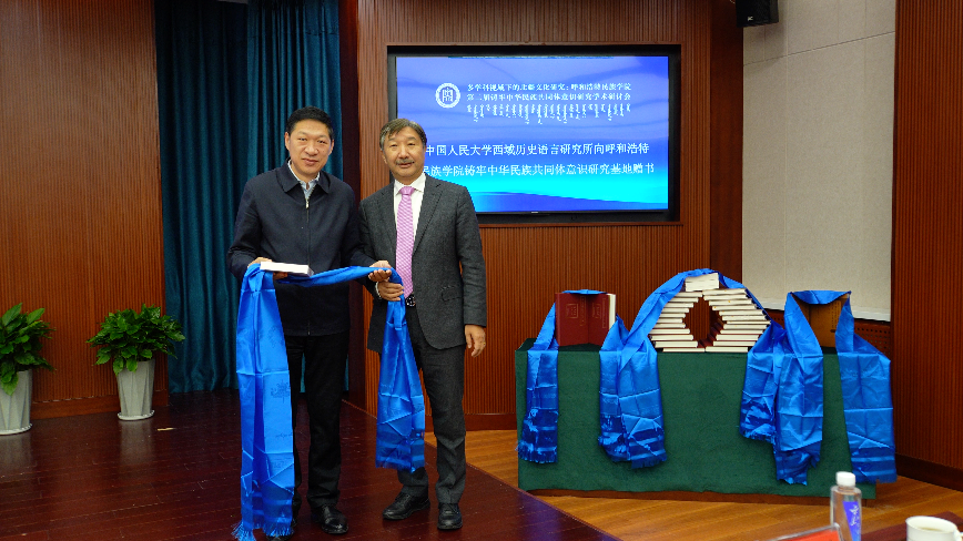 其间,中国人民大学西域历史语言研究所向beat365英国官方网站铸牢中华民族共同体意识研究基地赠书。