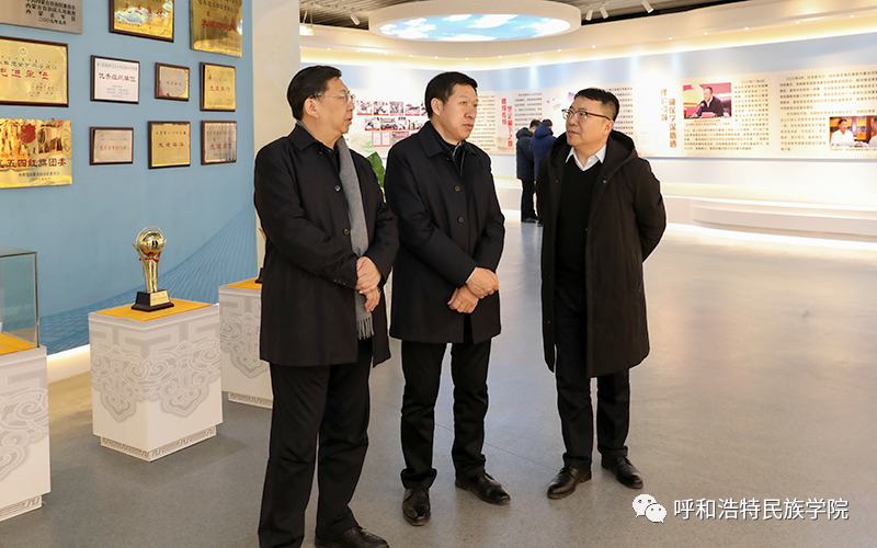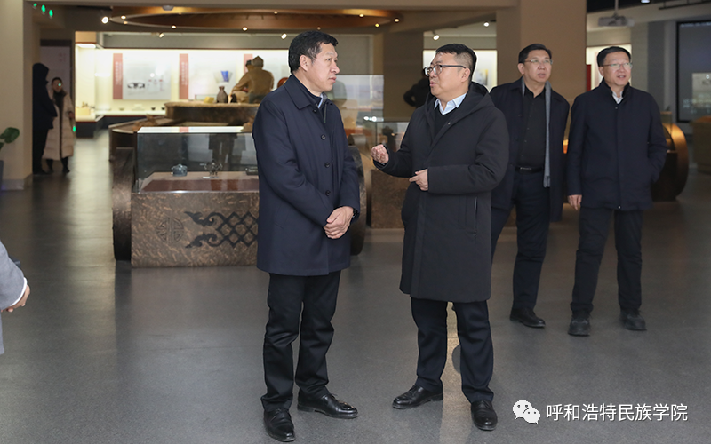 刘九万一行参观了内蒙古民族大学校史馆、蒙医药展厅、西辽河文明展厅和铸牢中华民族共同体意识工作展厅。