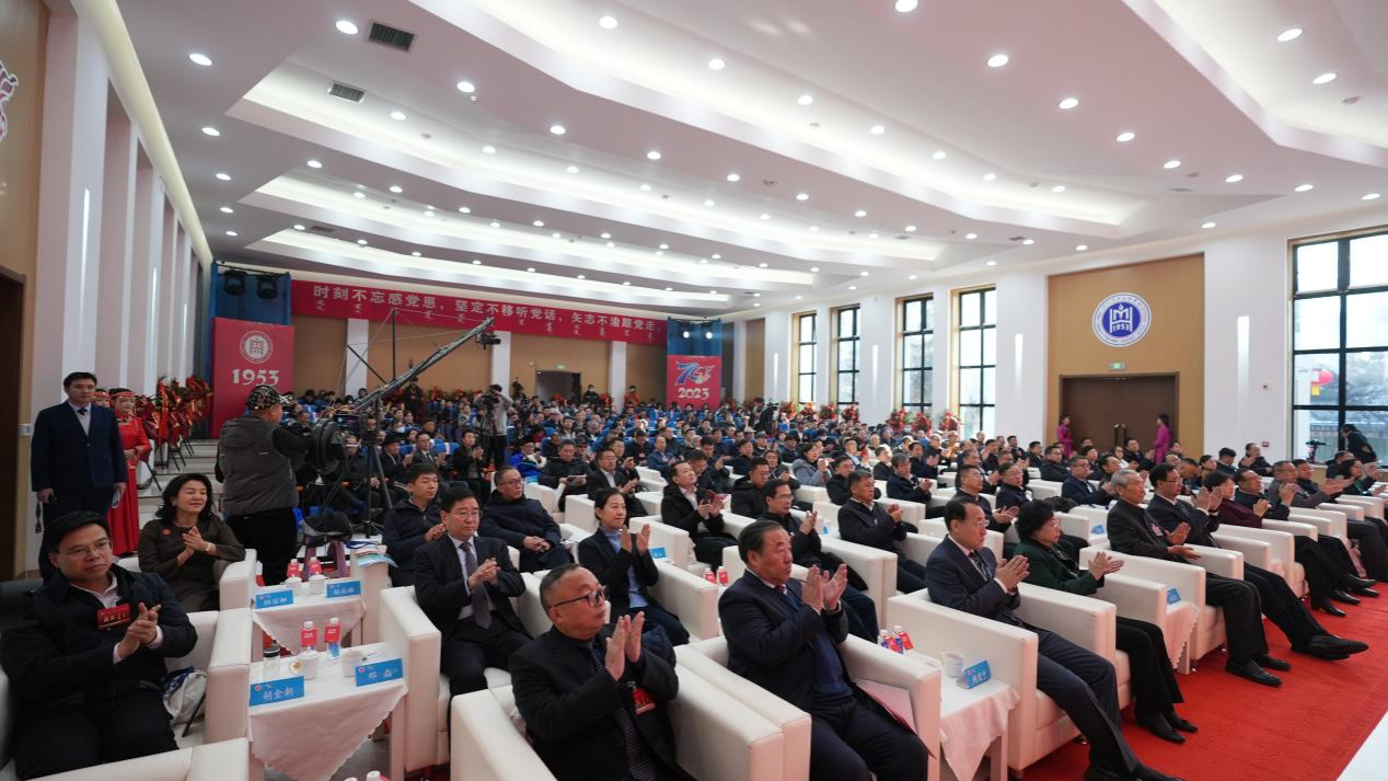 刘九万代表学校各族师生员工,向各位领导、嘉宾的到来表示热烈的欢迎,向全体师生和海内外校友致以美好的祝福,向关心支持学校建设发展的各级领导、各界朋友致以衷心的感谢。他指出,作为内蒙古自治区创办最早的一所民族院校,70年来,在自治区党委、政府的正确领导下,学校建设发展取得了可喜成绩,广大学子扎根北疆,为国家和自治区作出了应有贡献。他表示,大会吹响了学校发展承前启后、继往开来的新号角。呼民院将以庆祝大会为契机,以习近平新时代中国特色社会主义思想为指导,以铸牢中华民族共同体意识为主线,抢抓机遇、开拓创新,全面推进学校高质量发展,为打造“北疆文化”品牌,为推动落实两件大事,为强国建设、民族复兴作出新的更大贡献。