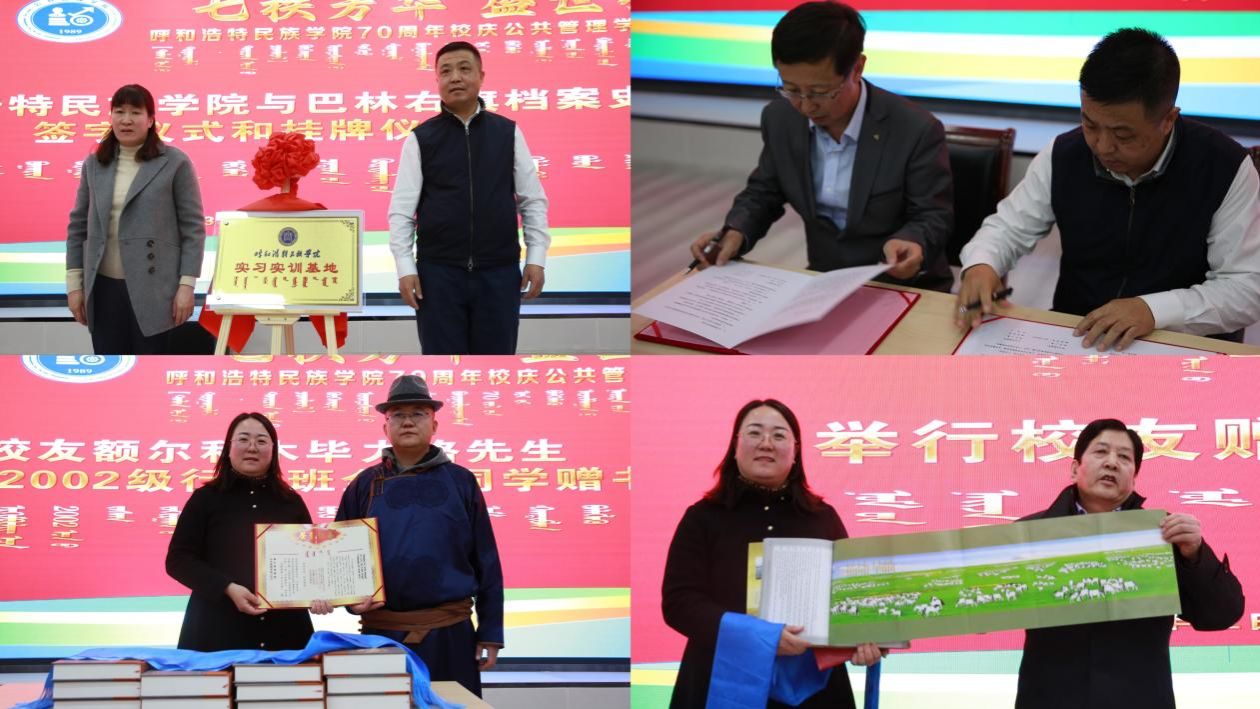 会上,哈斯同力嘎表示“公共管理学院未来将进一步加强与其他学院以及校外机构的合作,拓宽学术视野,丰富教学内容,提升研究水平,以期在公共管理领域培养更多公共管理人才”;校友们表示“一定要牢记崇正、尚智、务本、传承的校训,在母校的指引下再集结、再起航、团结互助,为校友服务,为母校增光”。此外,在见面会上举行了beat365官网与巴林右旗档案史志馆的签字仪式和挂牌仪式以及校友赠书仪式。