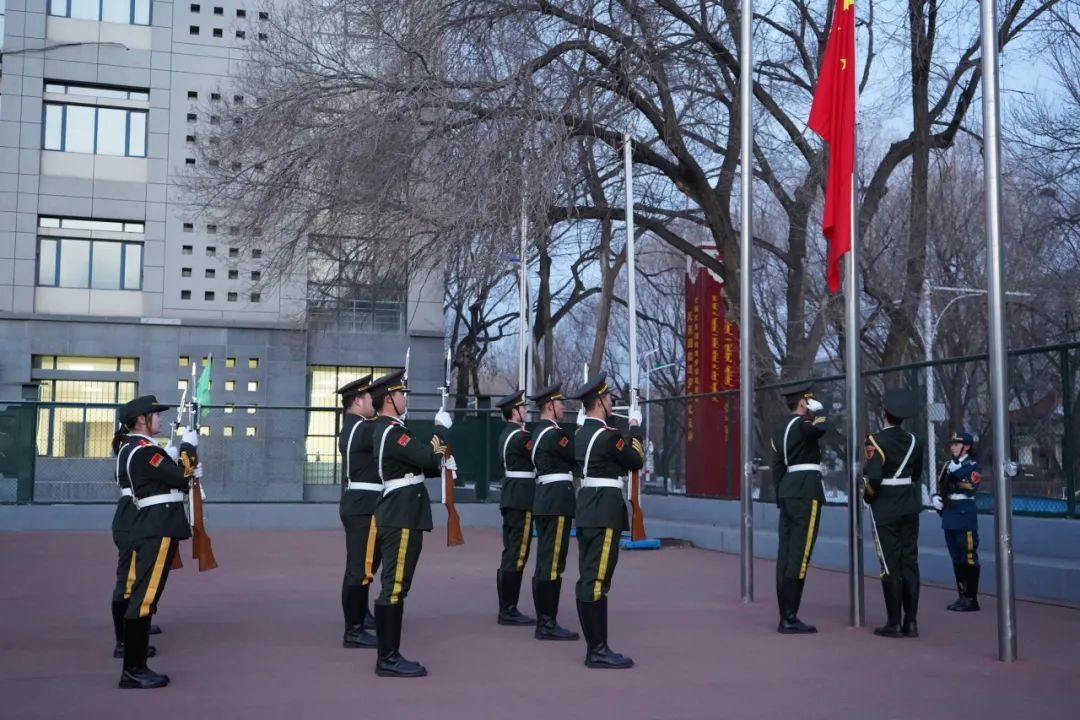 2月26日7时,学校在南操场举行了庄严的“同升国旗 同唱国歌”主题升国旗仪式。