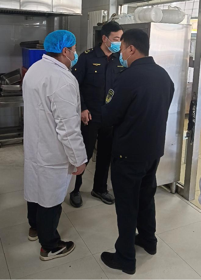3月1日,新城区海东路市场监督管理所工作人员来beat365官网指导食品安全工作,校党委委员、副校长刘瑞鸿陪同检查。