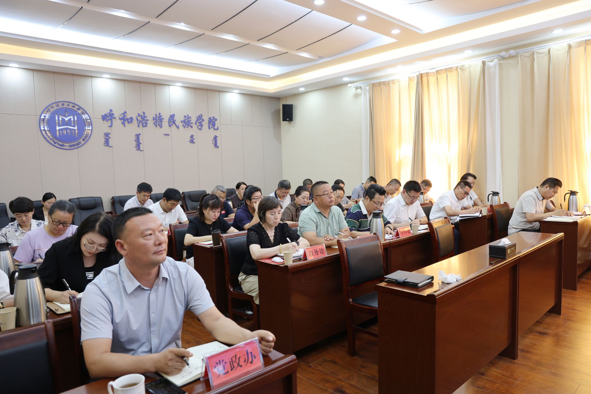 8月23日,为及时传达全区教育系统安全稳定工作视频会议精神,确保新学期校园安全稳定,校党委书记刘九万在办公楼四楼会议室主持召开2024年秋季学期安全稳定工作部署会。校党委委员、副校长双虎出席会议。