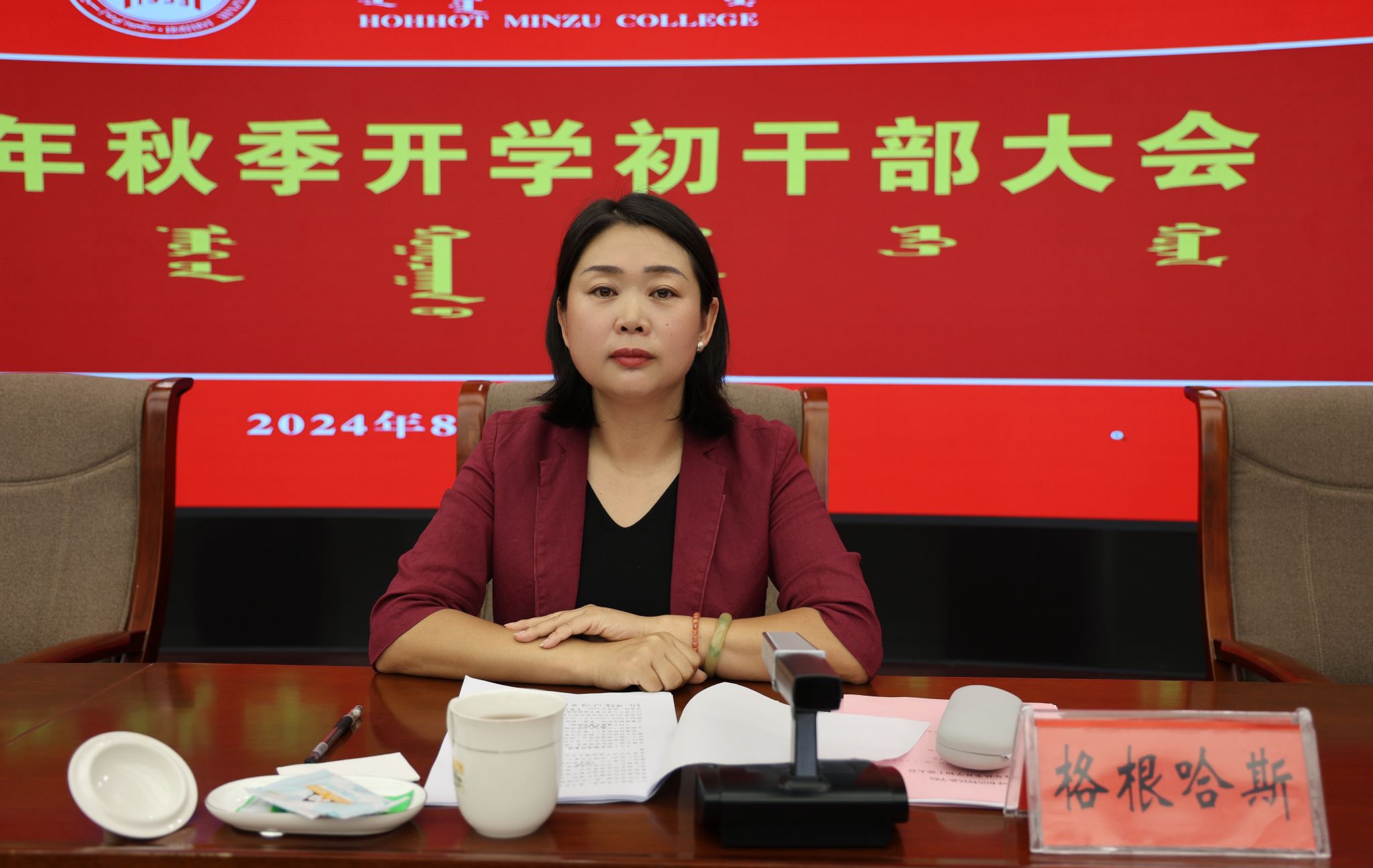 8月26日,学校在综合楼12楼会议室召开2024年秋季开学初干部大会。校党委书记刘九万主持会议并作总结讲话。党委副书记格根哈斯回顾总结2024年上半年工作,安排部署2024年下半年重点工作。党委委员、纪委书记、监察专员王冬梅,党委委员、副校长高喜天,党委委员、副校长刘瑞鸿,党委委员、副校长双虎校领导出席会议,全校副处级以上干部参会。