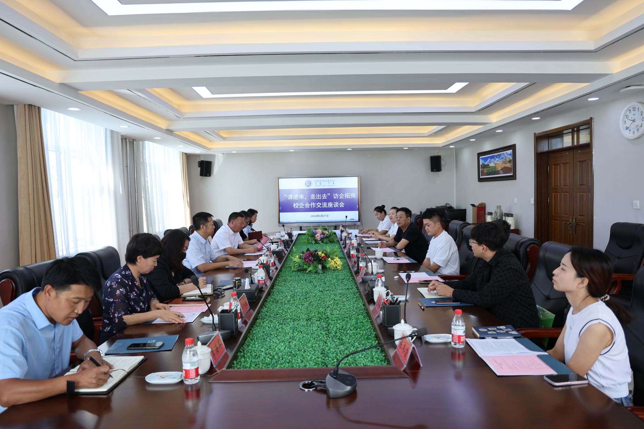 为贯彻落实教育部、自治区教育厅关于开展高校访企拓岗促就业专项行动的工作部署和要求,深化校企合作,8月27日,校党委委员、副校长双虎与企业代表召开校企合作交流座谈会。招生就业处、音乐与舞蹈学院、美术学院、计算机与信息技术学院和内蒙古第五维信息技术有限公司、明喆集团股份有限公司呼和浩特市分公司等4家企业代表参加会议,会议由党政办公室主任包仓主持。