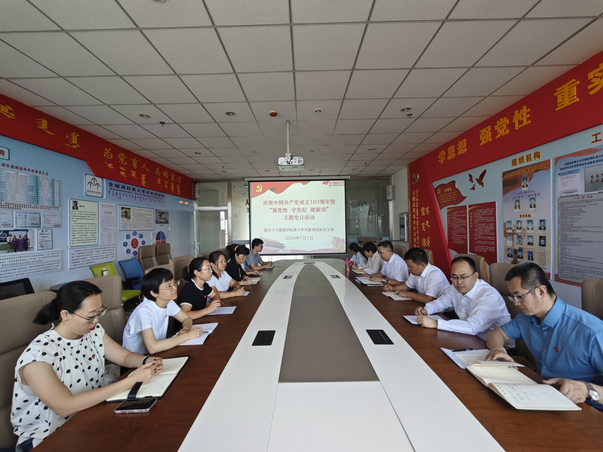 数学与大数据学院黄大年式教师团队党支部共有12名党员,支部党员队伍中高级职称的党员6名,博士学位的党员10名,汇聚了自治区党委命名的“担当作为好干部”、自治区教学名师、教坛新秀奖、草原英才、青年科技领军人才等在内的优秀干部、教学骨干和学术带头人。近年来,数学与大数据学院黄大年式教师团队党支部始终以习近平新时代中国特色社会主义思想为行动指南,紧紧围绕服务自治区两件大事,以铸牢中华民族共同体意识为主线,不断发扬“心有大我,至诚报国”的黄大年精神,以一流学科建设为驱动,秉承“教学科研并举,立德与育人并重”的教学理念,形成党支部与教研室双向互动模式,着力提升人才培养能力和服务经济社会发展的能力,取得了积极成效。2019年获批“全国党建工作样板支部”培育创建单位,2021年获批自治区“最强党支部”建设单位,2022年荣获全国“工人先锋号”称号,2024年获评“内蒙古自治区坚强堡垒模范支部”。数学与大数据学院黄大年式教师团队党支部逐步建设成为一支高素质专业化教师党员队伍。