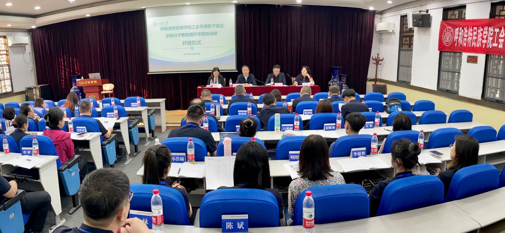 10月28日至11月1日,beat365官网在重庆大学法学院培训中心举办学习贯彻党的二十届三中全会精神暨工会专兼职干部及积极分子素能力提升专题培训班。校党委委员、副校长刘瑞鸿出席开班仪式并作动员讲话,重庆大学法学院院长靳文辉致开班辞并授班旗。来自全校各基层分工会主席、校工会专兼职干部等40余人参加培训。