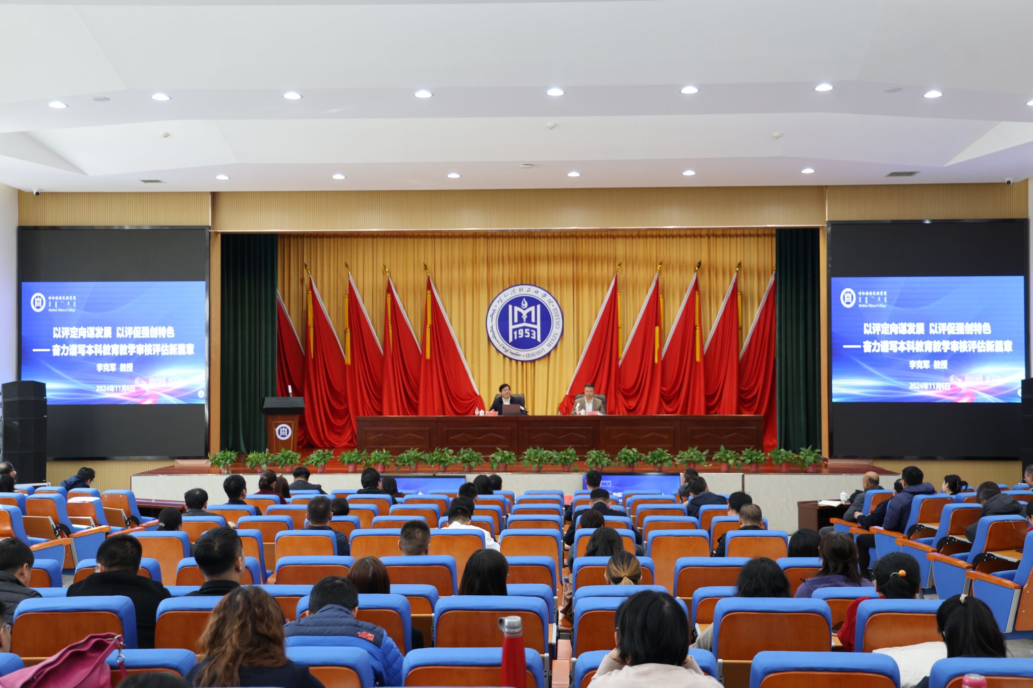 为做好beat365官网本科教育教学审核评估工作,推进学校教育教学高质量发展,11月6日下午,学校邀请教育部师范类专业认证专家、教育部本科教育教学审核评估专家、河北民族师范学院副校长李克军教授在学术报告厅作了题为《以评定向谋发展 以评促强创特色—奋力谱写本科教育教学审核评估新篇章》的主题讲座。校党委委员、副校长高喜天,党委委员、副校长额尔敦布和,党委委员、副校长双虎出席会议,讲座由额尔敦布和主持。