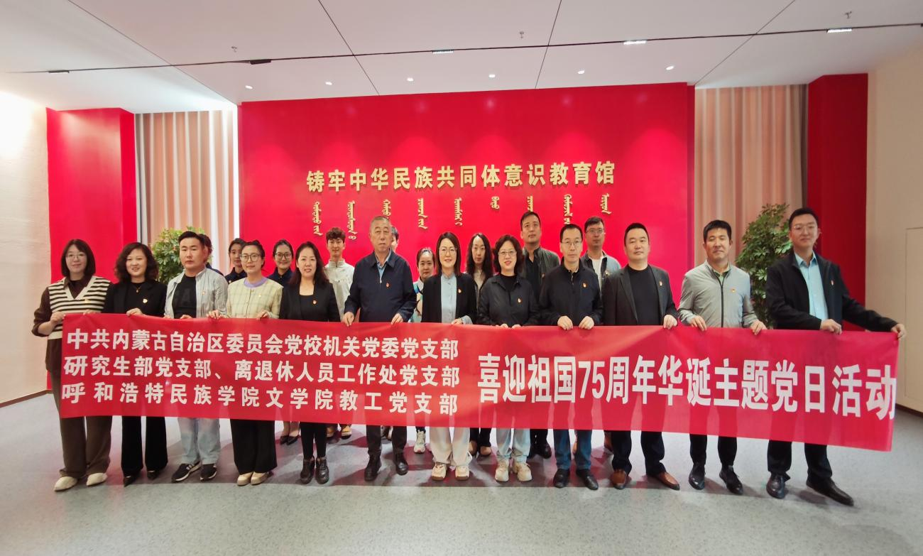 为深入学习贯彻党的二十届三中全会精神,热烈庆祝中华人民共和国成立75周年,文学院教工支部联合中共内蒙古自治区委员会党校机关党委党支部、研究生部党支部、离退休人员工作处党支部共20余名党员于9月20日在学校开展“喜迎祖国75周年华诞”主题党日活动。