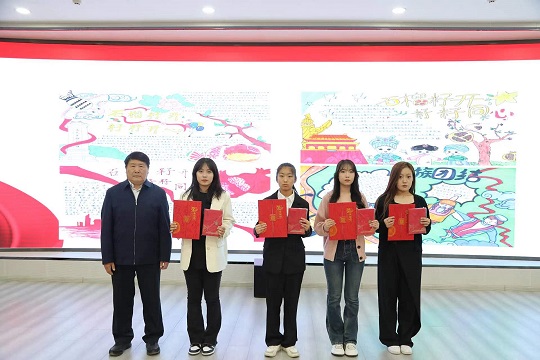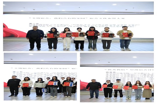 学校党委委员、统战部部长包君及党委学生工作部领导为获奖学生进行颁奖。
