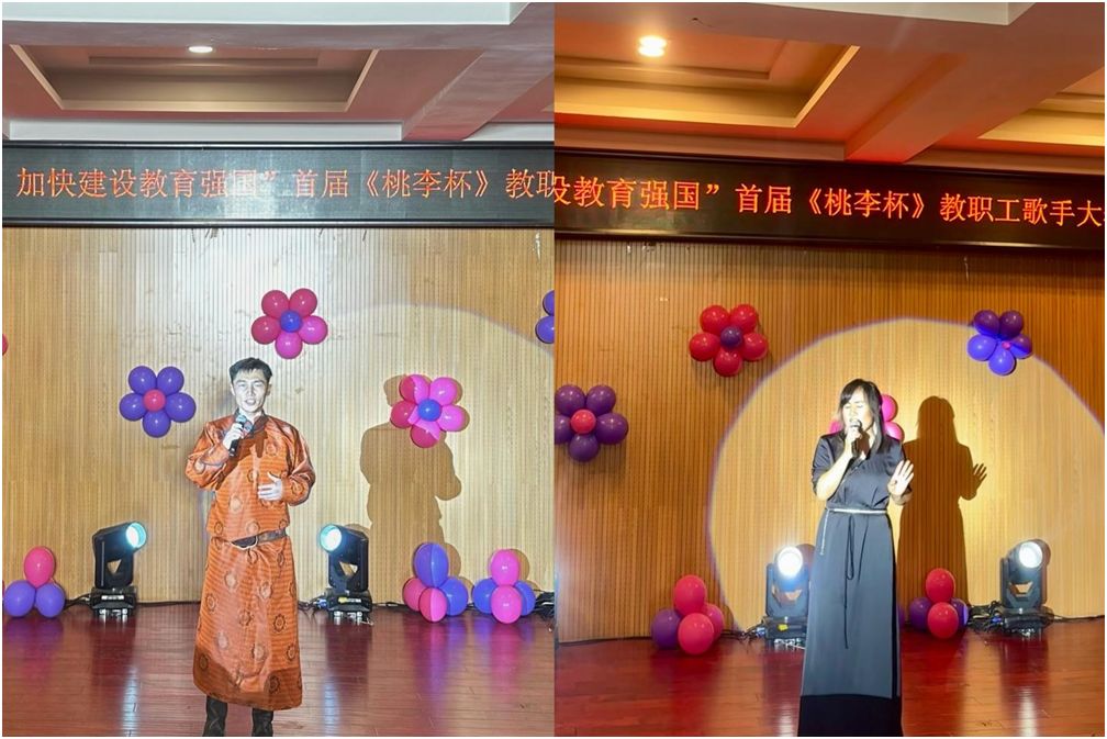 为庆祝第40个教师节,展现beat365官网教职工才艺风采,持续唱响时代主旋律,9月3日晚,由学校工会主办,音乐与舞蹈学院承办的“大力弘扬教育家风采,加快建设教育强国”首届《桃李杯》教职工歌手大赛在音乐楼多功能厅拉开帷幕。比赛邀请音乐与舞蹈学院副教授包秀兰、副教授包金花、青年讲师格日乐巴图担任评委。工会、各二级学院相关负责人、参赛教师、学生代表近100人观看了比赛。