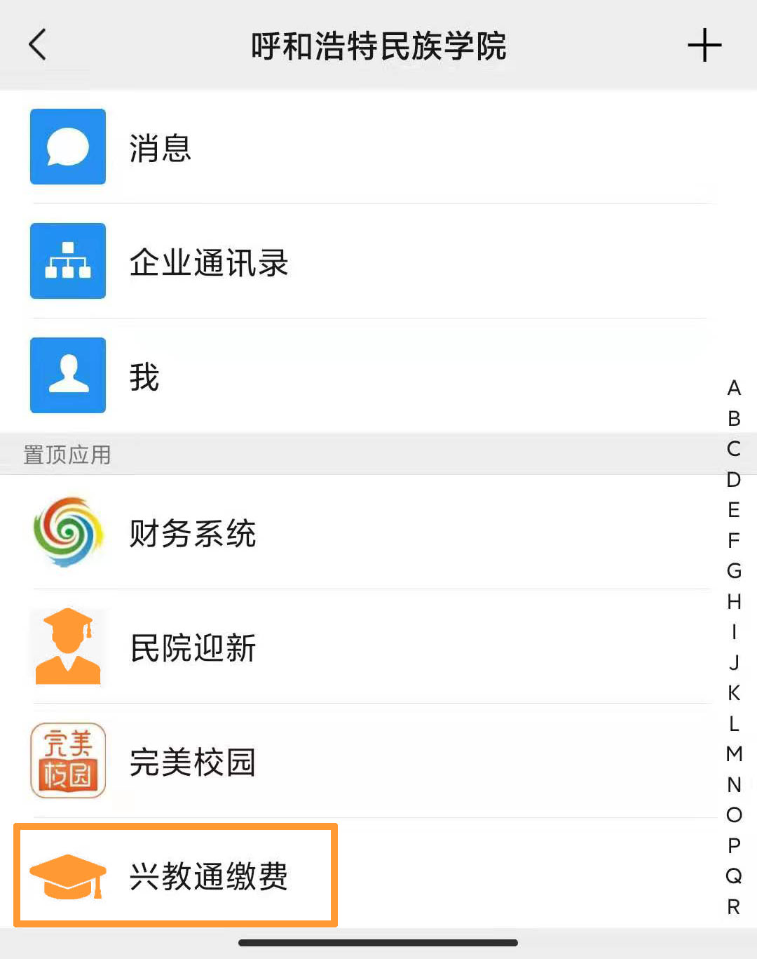 4.打开学校企业微信