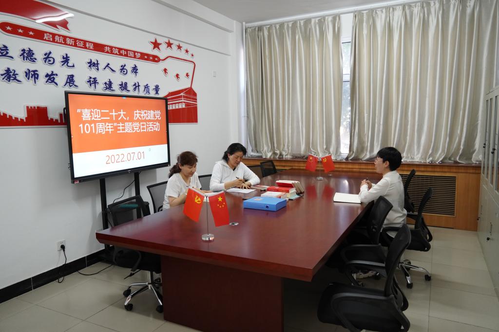 教师发展与教学评估中心、翻译研究中心党支部组织全体党员于7月1日早,参加了学校的“七一”升国旗、重温入党誓词活动。随后到敏行楼205教师研讨室集体观看红色主题电影《古田一九二九》。观影结束后,各位党员围绕党建工作,结合自己工作岗位,对党的二十大历史意义的认识进行了相互交流。纷纷表示,继续发挥好党员先锋模范作用和桥梁作用,用实际行动迎接党的二十大胜利召开。最后党支部书记陈娜仁其木格向大家汇报了上半年的工作、活动开展情况和下一步工作计划。