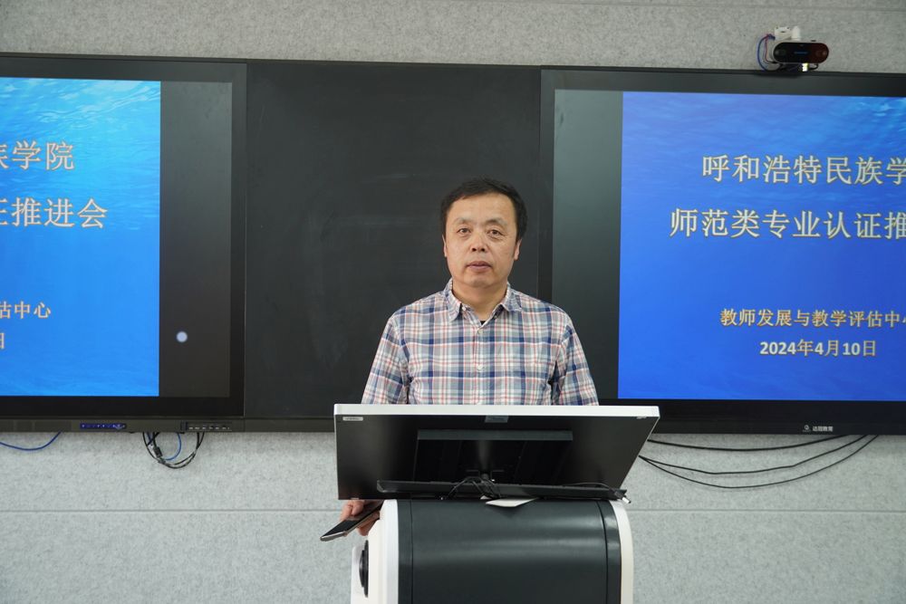 为了全面了解和准确把握师范类专业认证的理念与内涵,熟悉师范类专业认证工作的原则与要点,共同探讨如何推进下一步工作,提高工作效率,于4月10日下午,学校在尚志楼619智慧教室召开了师范类专业认证工作推进会。校党委委员、副校长额尔敦布和参加了会议。会议由教师发展与教学评估中心主任胡毕斯哈拉图主持。