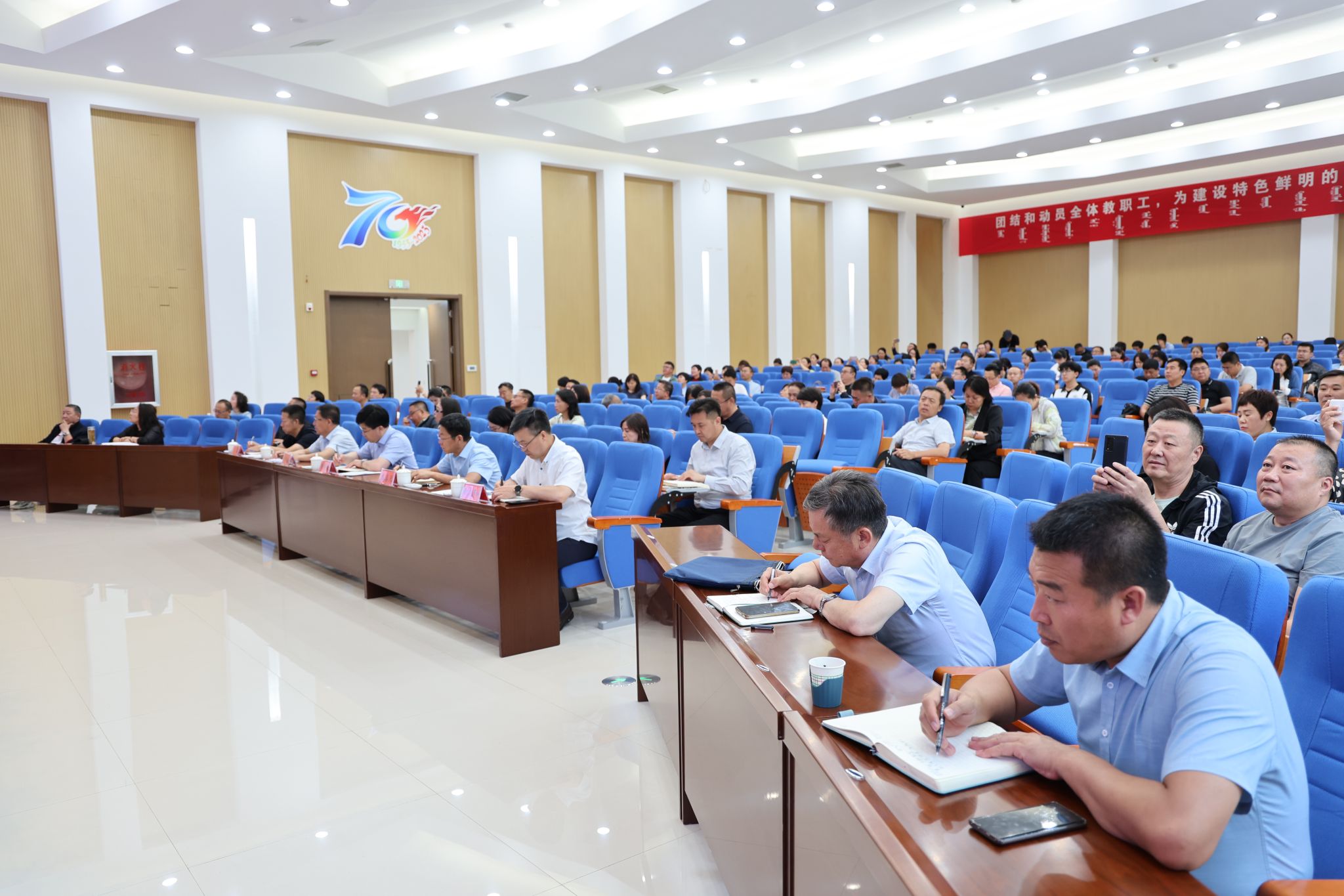 6月7日下午,教师发展与教学评估中心邀请内蒙古科技大学副校长陈明教授作了新一轮本科教育教学审核评估专题讲座。校党委副书记、校长韩伟新,党委委员、副校长高喜天、刘瑞鸿、双虎出席,校党委委员、副校长额尔敦布和主持。