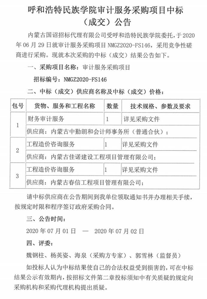 审计服务采购项目中标(成交)公告