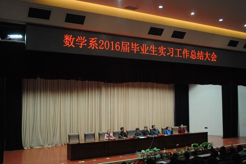 11月18日,数学系16届毕业生实习总结表彰大会在图书馆二楼报告厅顺利召开。全系师生参加了本次会议。会议由党总支书记布日古德主持,系副主任额尔敦其其格对实习工作做了总结,副主任王海清宣读了数学系关于表彰优秀实习指导教师 、优秀实习生的决定。