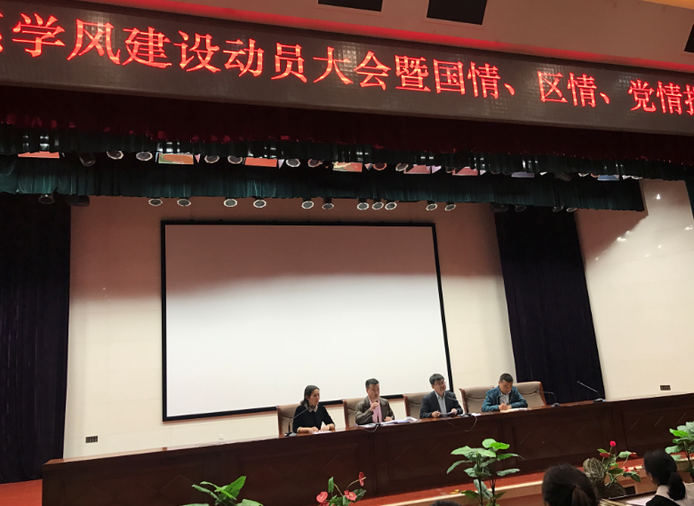 为了提高学生思想道德水平和国情、党情与区情知识面,进一步推进学风和教风建设,营造学生的良好学习氛围,数学系于2017年4月15日晚在学校图书馆二楼报告厅召开2017学年“学风建设”动员大会暨国情、党情与区情报告会,学校学生处副处长陈青春副处长出席指导,会议由数学系主任额尔敦布和教授主持,全系师生440多人参加会议。