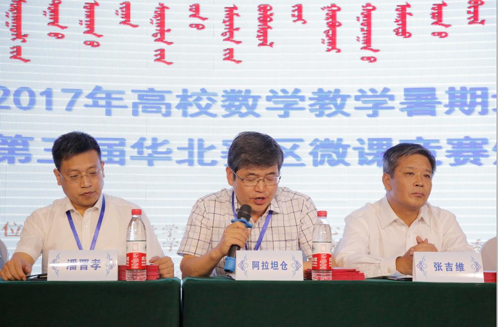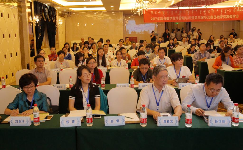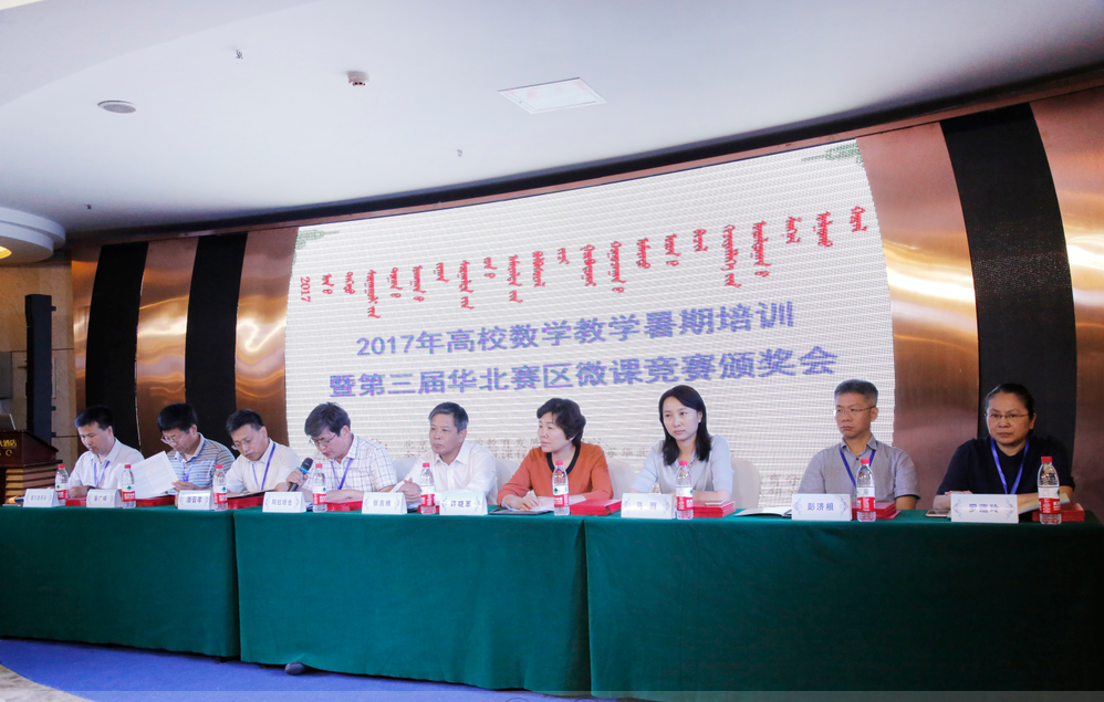 由北京高校数学教育发展研究中心、全国微课程教学设计大赛华北赛区组委会主办、beat365官网及内蒙古自治区高等教育学会数学教育分会承办的2017年高校数学教学暑期培训暨第三届华北赛区微课竞赛颁奖会于2017年8月23日—25日在美丽的呼和浩特市举行,内蒙古、北京、天津、河北和山西等华北地区40多所高校的140多名专家、学者和教师参加。本次会议由开幕式、大会报告、微课作品展示和闭幕式四个部分组成。