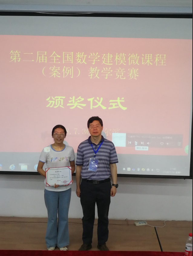 数学系教师刘爱春参加此次会议,听取了孙家昶研究员的《我对“数学建模”的若干个人体验》、陈叔平教授的《从数学建模谈大学数学教学》、沈继红教授的《海浪遥感监测关键技术中的数据处理模型》、韩中庚教授的《数学建模竞赛的现状、问题分析与建议》、李换琴教授的《基于数学建模的工科大学生创新实践能力培养模式的探索与实践》等报告,并在第二届全国数学建模微课程(案例)教学竞赛现场授课决赛中获得三等奖。