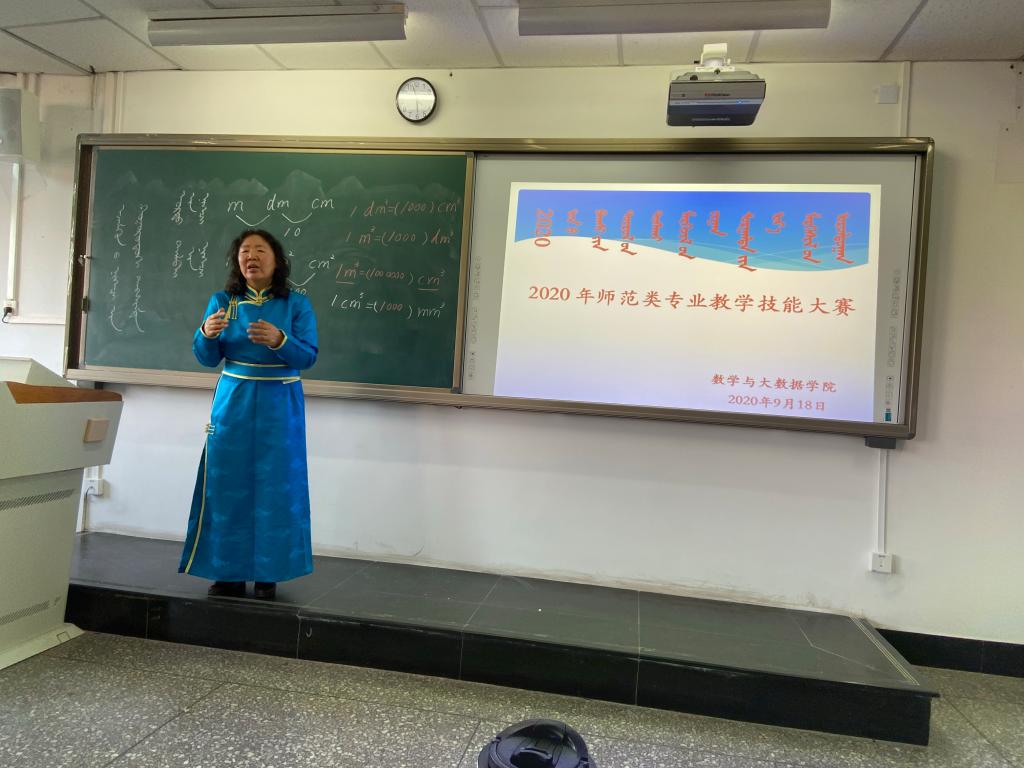按照学校《关于举办beat365英国官方网站第一届师范生教学技能大赛的通知》要求,数学与大数据学院于2020年9月18日14:30在尚志楼408和412举办了师范生教学技能大赛初赛。我院2019级、2018级、2017级小教专业和数学与应用数学(师范类)专业各班级通过预赛共选出18位同学参加本次初赛,分别为蒙语组7个和汉语组11个。参加的评委老师有计算机科学与信息工程学院院长斯日古楞教授、化学与环境学院院长李福全教授,数学与大数据学院相关领导、老师共10人。