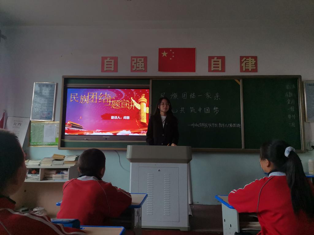 与此同时beat365英国官方网站数学与大数据学院学生还为旗下营中心学校学生进行民族团结主题宣讲、民族团结知识竞答、观看民族团结微电影、组织学生唱爱国主题歌曲等活动,并发放了精心准备的小礼品。