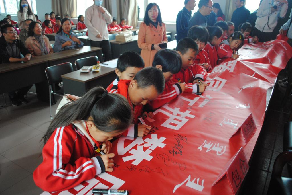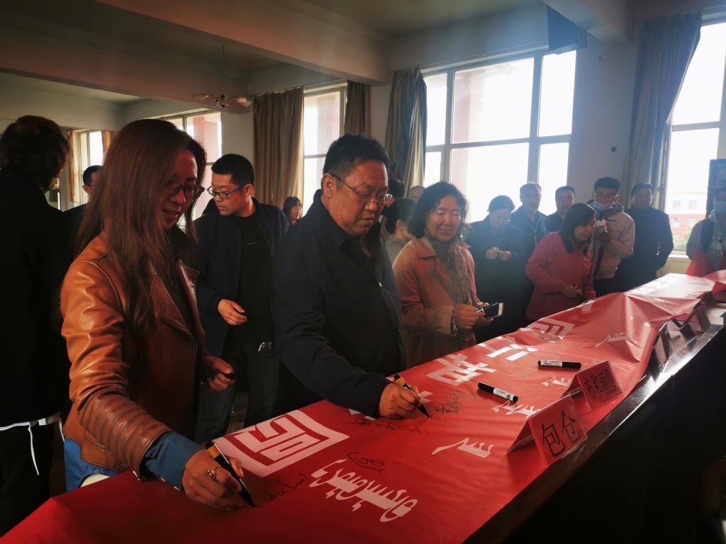 捐赠仪式结束后,与会领导及来宾、旗下营中心学校师生代表在“民族团结进校园、与爱同行把梦圆”条幅上做了承诺签名。
