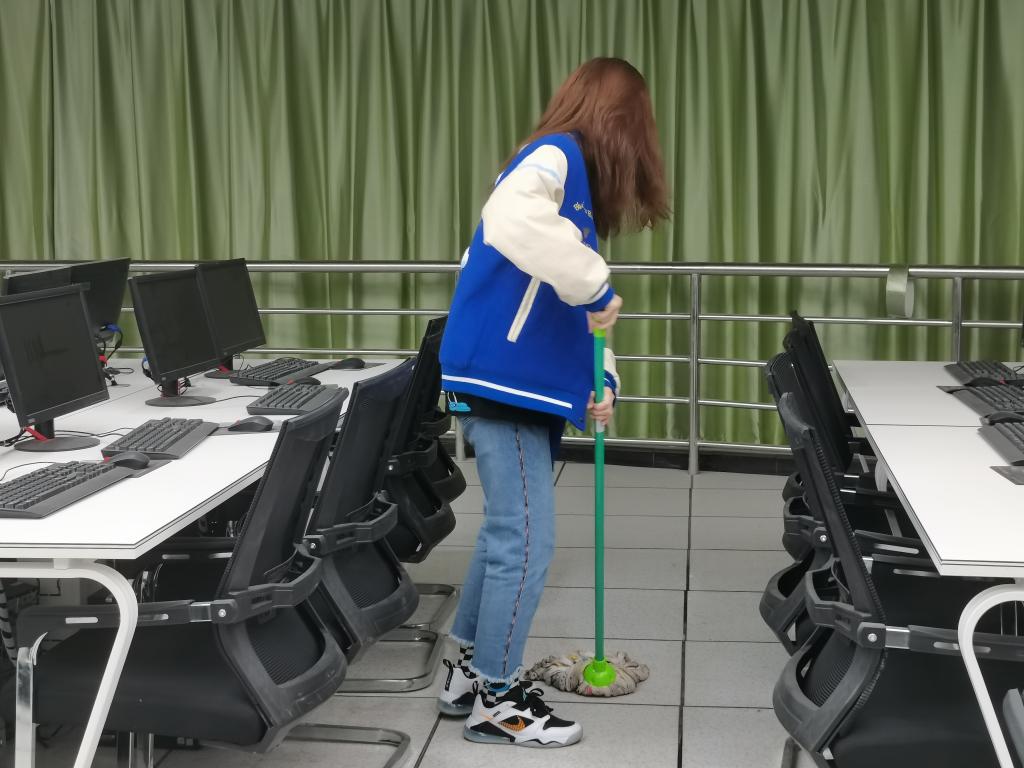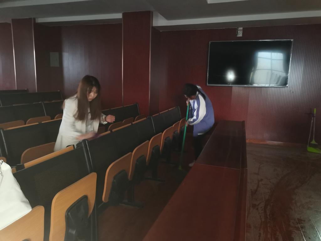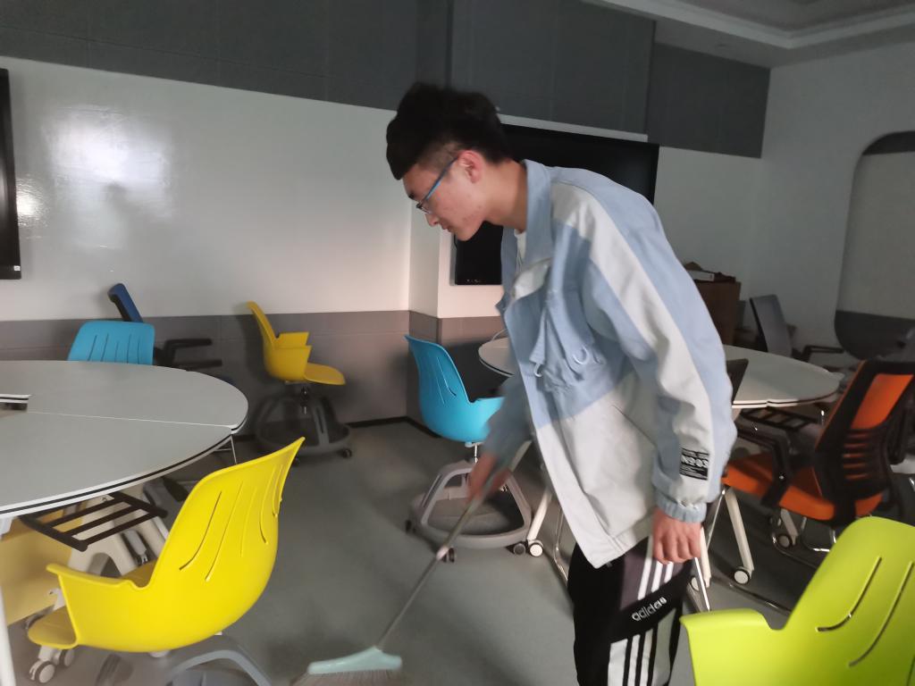 数学与大数据学院学生党支部将“为群众办实事”这一实践活动作为党史学习的重要内容,4月5日晚上和6日上午,学生党支部组织学生党员、发展对象、入党积极分子开展了志愿清扫服务活动。期间对尚智楼四楼学院学术报告厅、录播室、智慧教室、互动教室进行了彻底清扫,对仪器设备、桌椅板凳、台面、地面等尤其是卫生死角进行了认真打扫清理。整个劳动过程分工明确、各司其职、人人动手、积极合作,大家发扬不怕脏、不怕累的精神,力所能及的为学院环境美化做贡献,积极主动地参与到志愿清扫服务活动中。