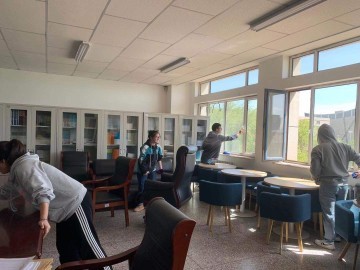 2021年5月8日(周六)上午,数学与大数据学院2020级数学与应用数学专业1班团支部组织支委会成员和班委会成员共8人开展了整理清扫学院资料室和会议室的劳动实践志愿服务活动。通过本次活动,资料室和会议室变得井然有序,整洁明亮,为全院师生的学习和工作营造了良好的环境,同时也践行了共青团员“我是共青团员,我帮你”。
