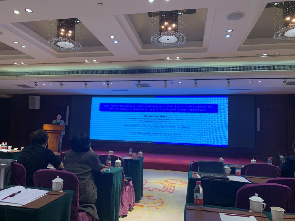 此次会议邀请了中山大学姚正安教授和重庆大学穆春来教授分别作了题目为“航路规划—飞行计划”和“On the strongly competitive case in a fully parabolic two-species chemotaxis system with Lotka-Volterra competitive kinetics”的大会报告。此外,18日下午设置了3个小组报告,30多名专家学者以此进行报告。19日为参会人员讨论交流环节。会议期间,我院4位教师与部分参会专家学者进行了深入的交流与讨论,收获颇多。