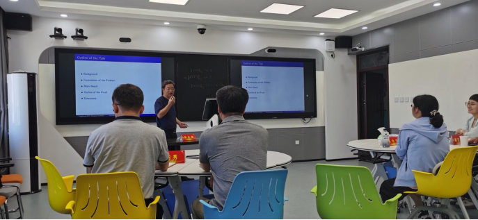 孙永忠教授报告的题目是“Asymptotic stability of incompressible flow driven by Gravity”,涉及流体力学中的非线性偏微分方程,特别是与Navier-Stokes耦合的相关模型的整体适定性和稳定性问题。该报告引起了参会老师们极大的兴趣,在会上积极提问并进行了深入的讨论交流。