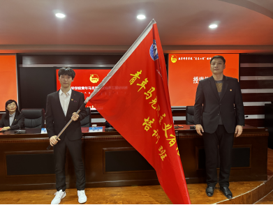 学校团委副书记胡斯勒为我院“青马工程”培训班授旗